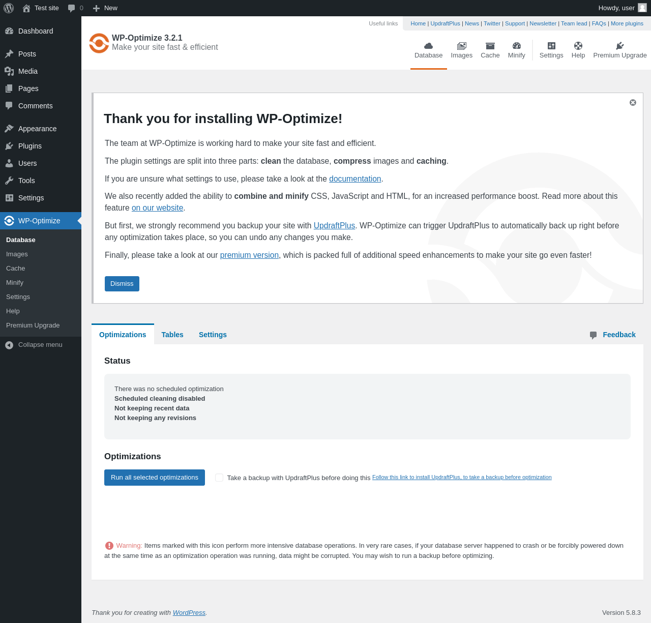 | URL | /wp-admin/admin.php?page=WP-Optimize |