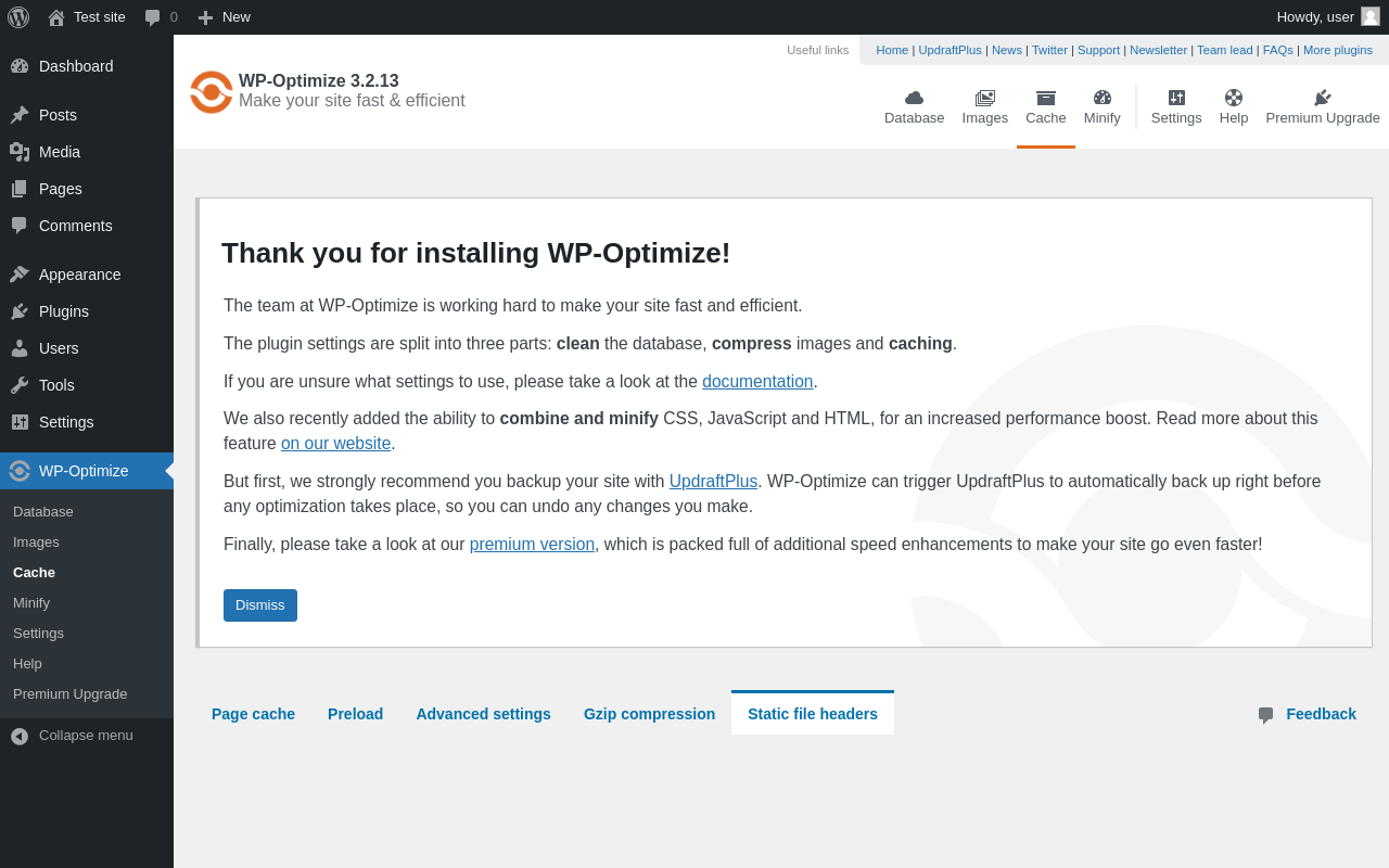 | URL | /wp-admin/admin.php?page=wpo_cache&tab=wp_optimize_advanced |