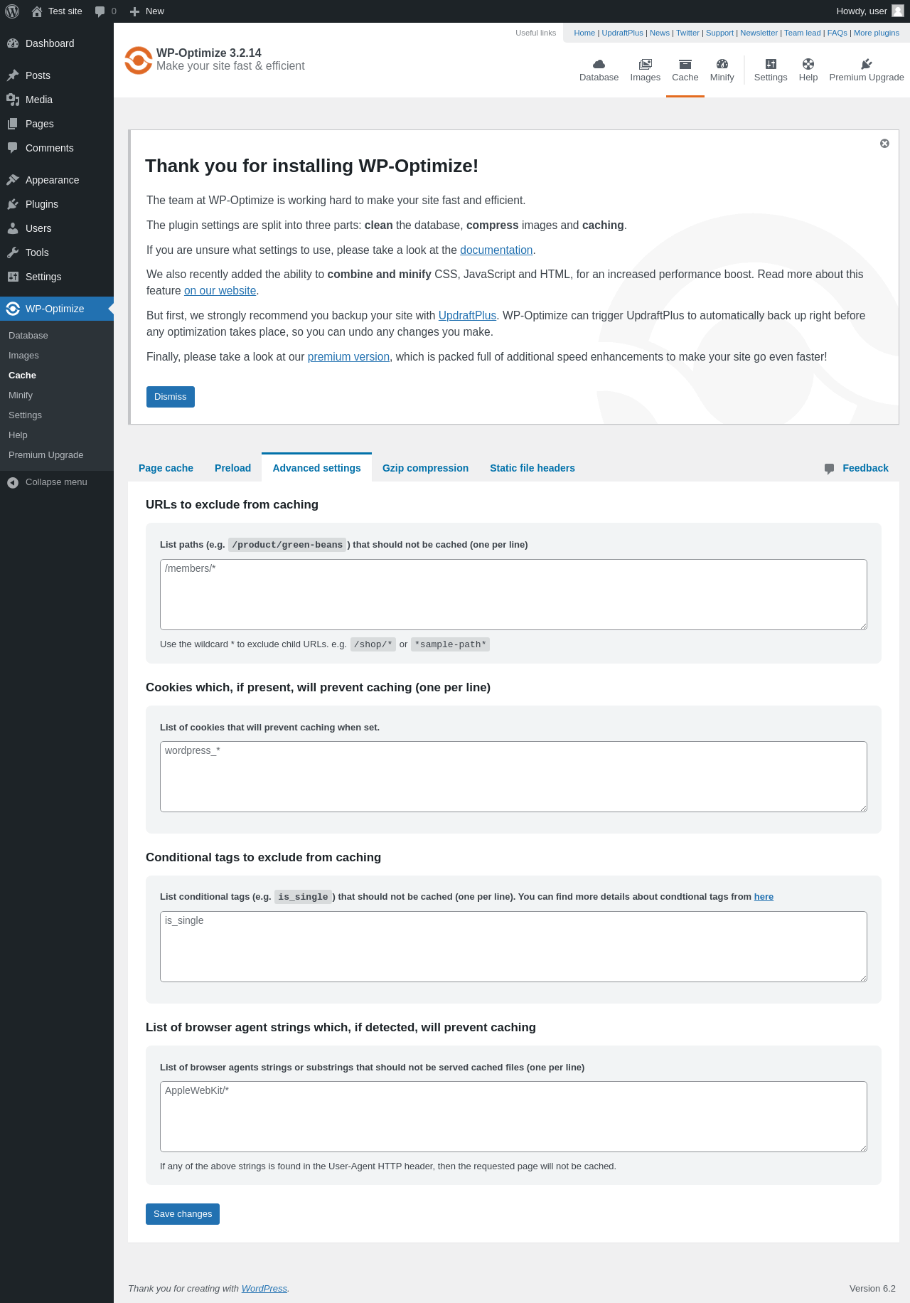 | URL | /wp-admin/admin.php?page=wpo_cache&tab=wp_optimize_advanced |
