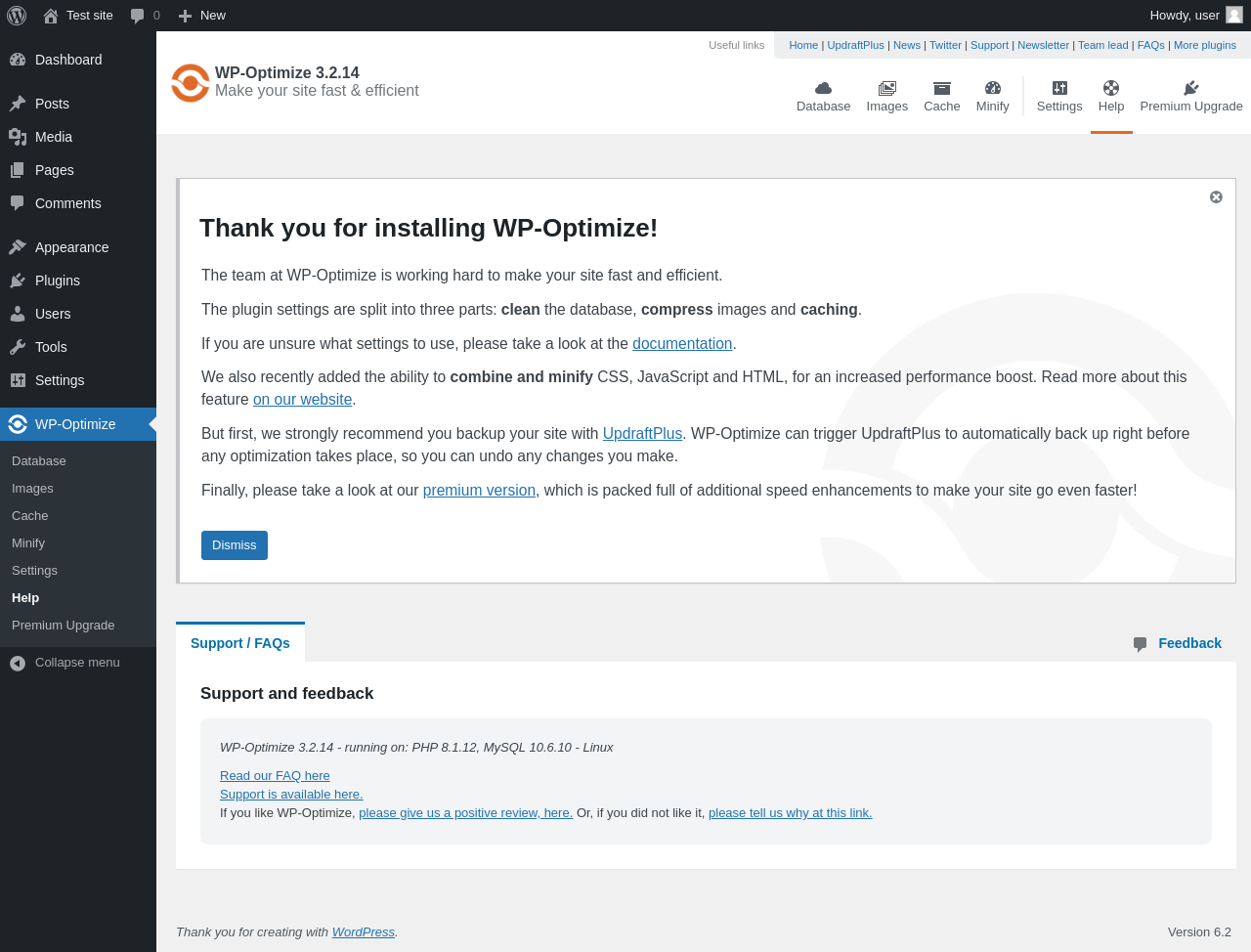 Does "WP-Optimize - Clean, Compress, Cache" work with WordPress 6.2 and PHP 8.1.12? A smoke test was performed on .