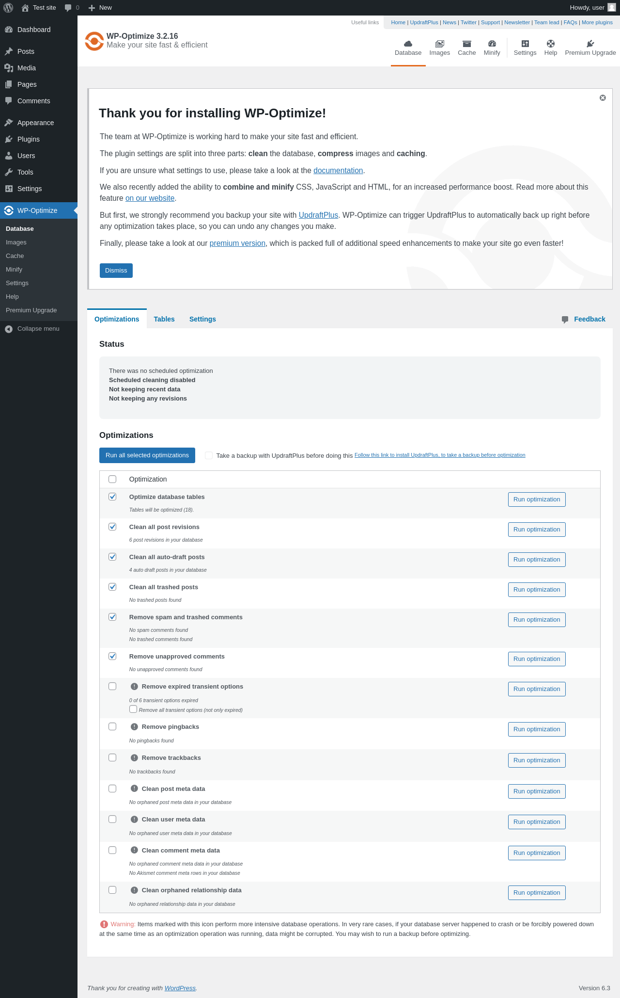 | URL | /wp-admin/admin.php?page=WP-Optimize |