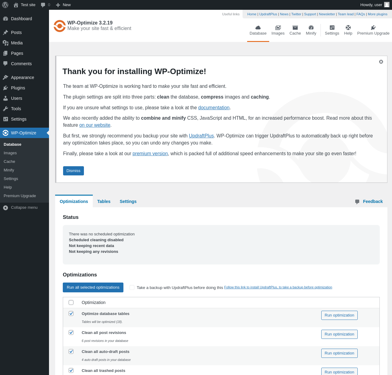 | URL | /wp-admin/admin.php?page=WP-Optimize |