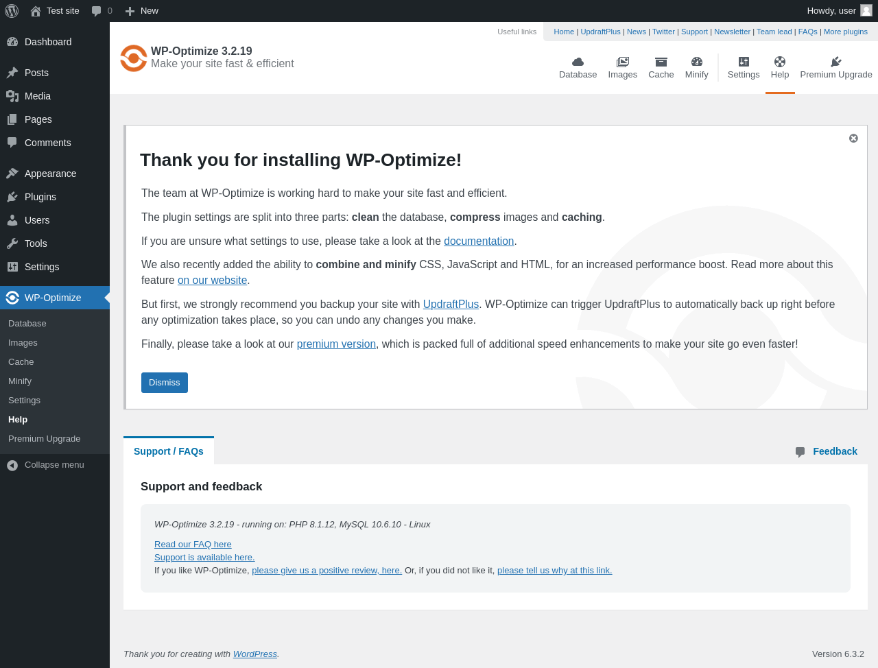 Does "WP-Optimize - Clean, Compress, Cache" work with WordPress 6.3.2 and PHP 8.1.12? A smoke test was performed on .