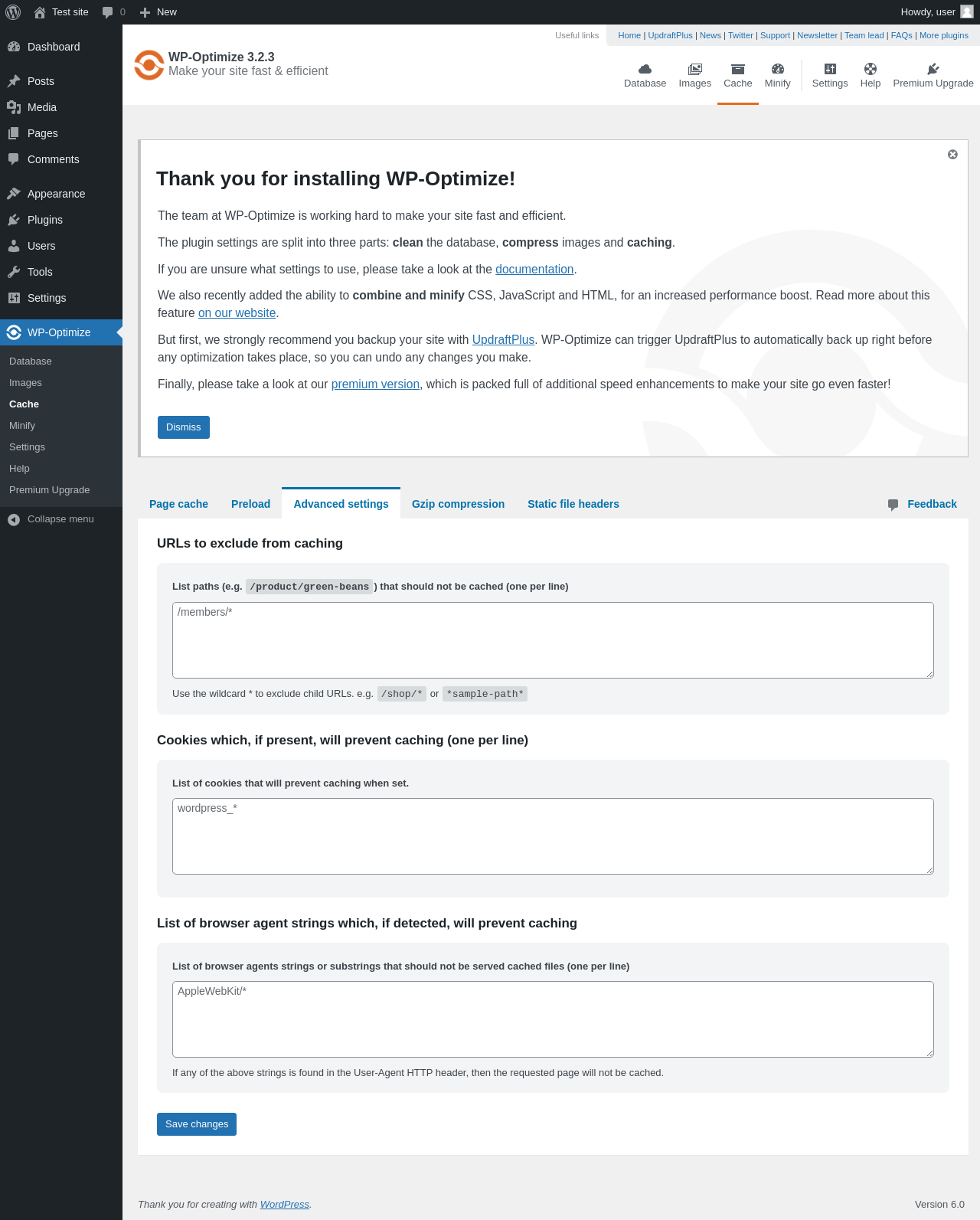| URL | /wp-admin/admin.php?page=wpo_cache&tab=wp_optimize_advanced |