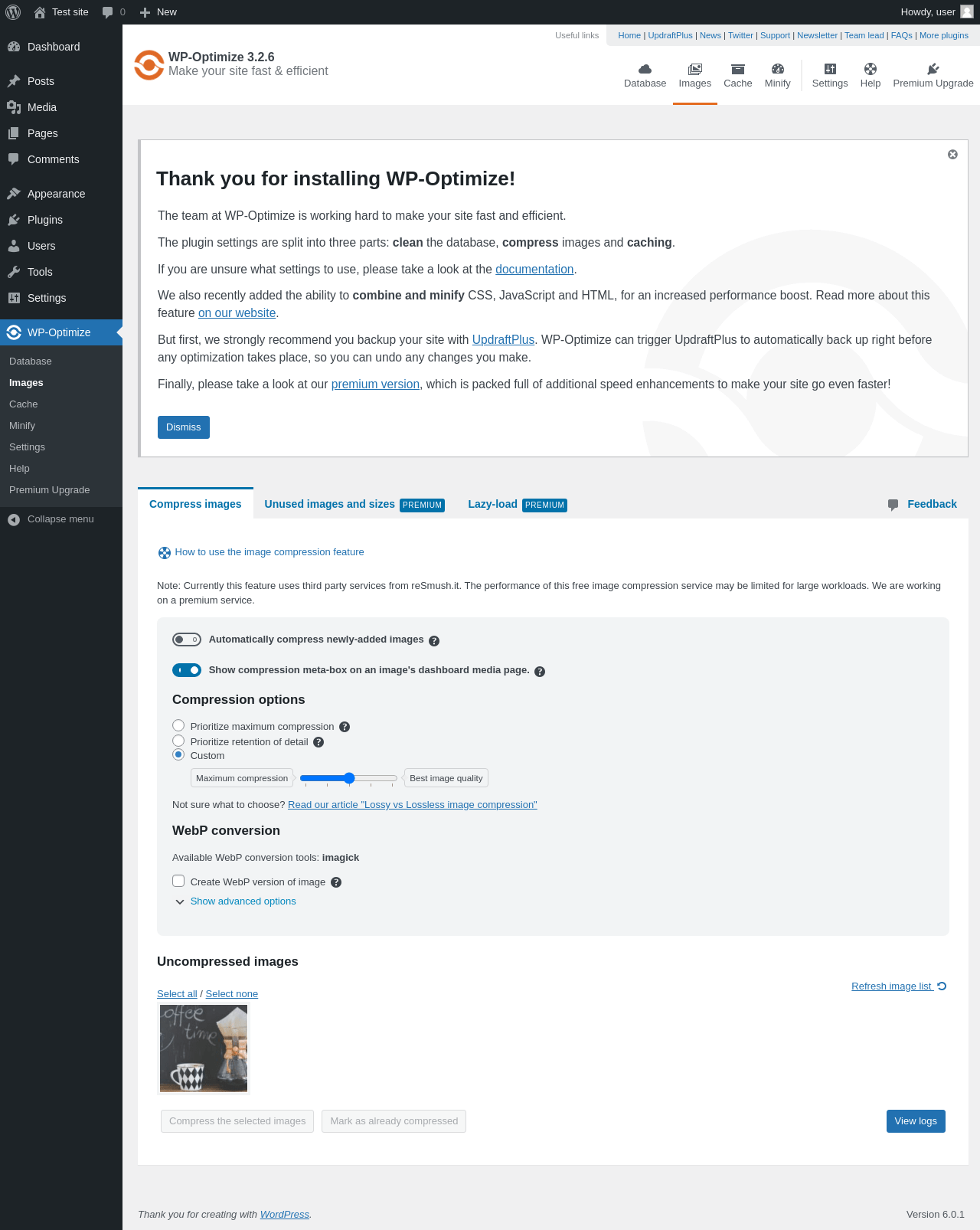 | URL | /wp-admin/admin.php?page=WP-Optimize |