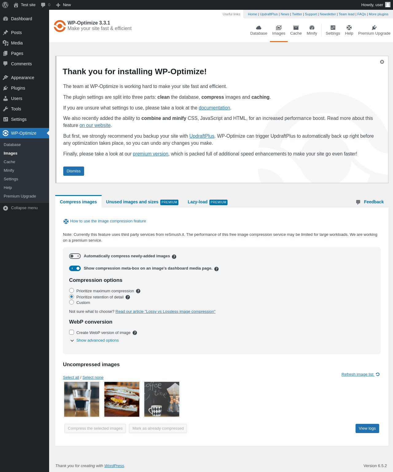 | URL | /wp-admin/admin.php?page=WP-Optimize |