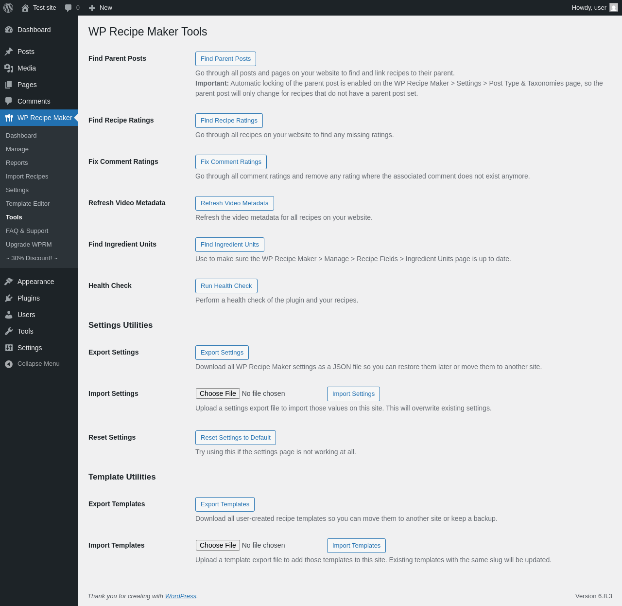 | URL | /wp-admin/admin.php?page=wprm_tools |