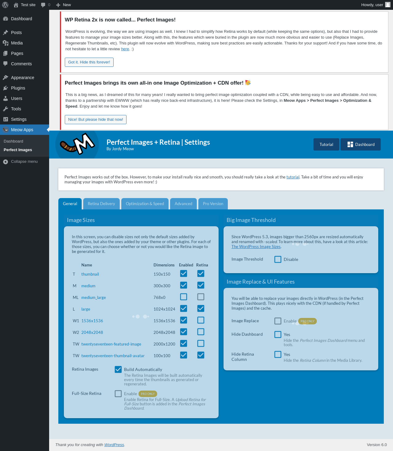 Does "Perfect Images (Retina, Thumbnails, Replace)" work with WordPress 6.0 and PHP 7.4.8? A smoke test was performed on .