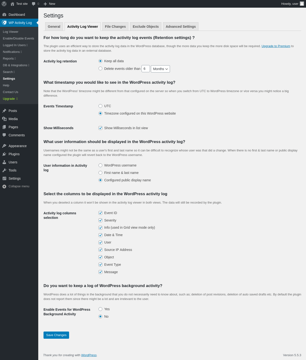 Does WP Activity Log work with WordPress 5.5.3 and PHP 7.4.8? A smoke test was performed on .