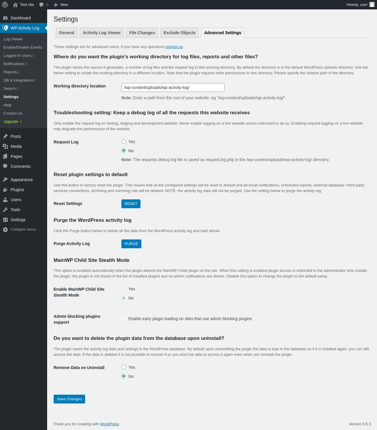 | URL | /wp-admin/admin.php?page=wsal-settings&tab=advanced-settings |