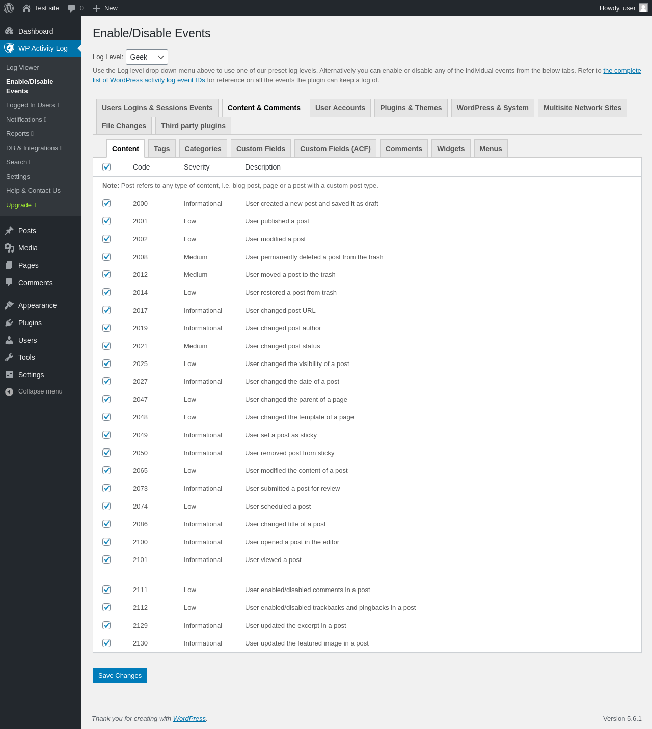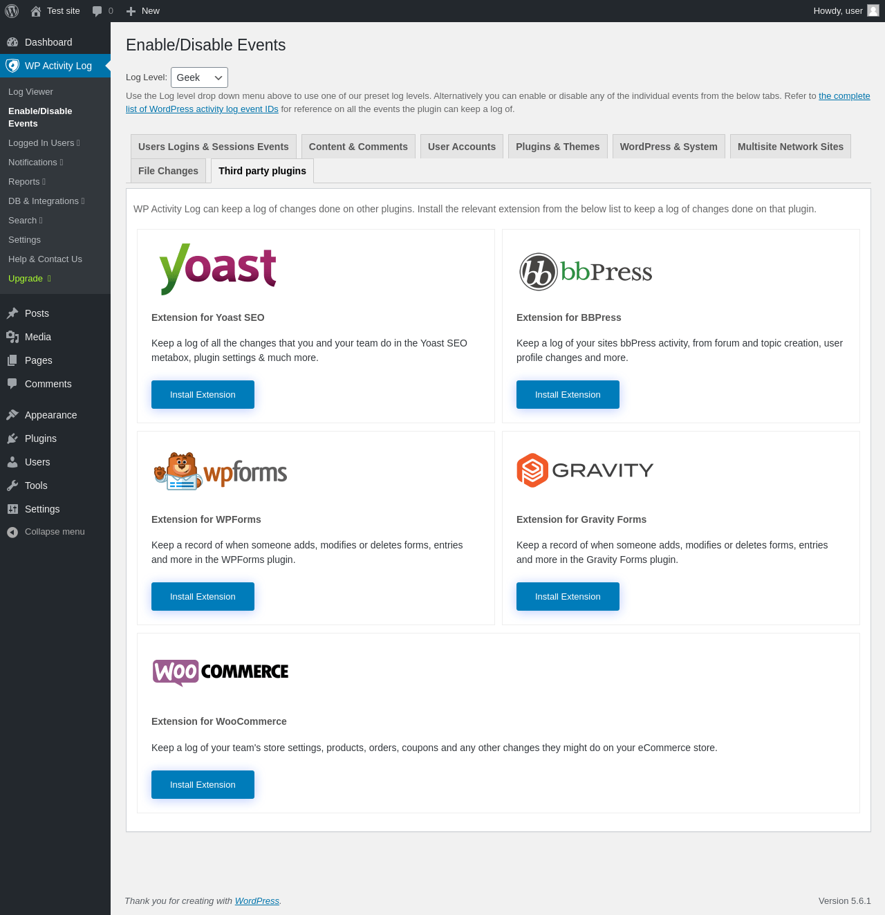 "title": "Latest Events | WP Activity Log",