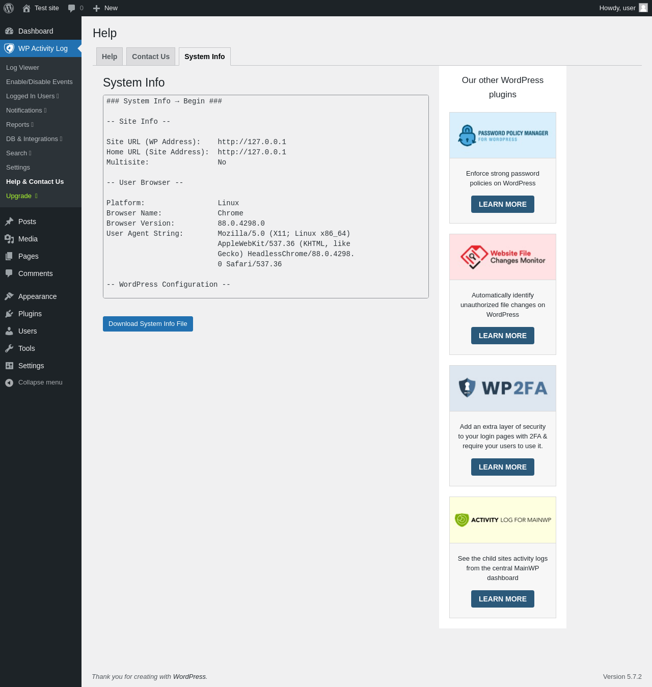 | URL | /wp-admin/admin.php?page=wsal-help&tab=system-info |
