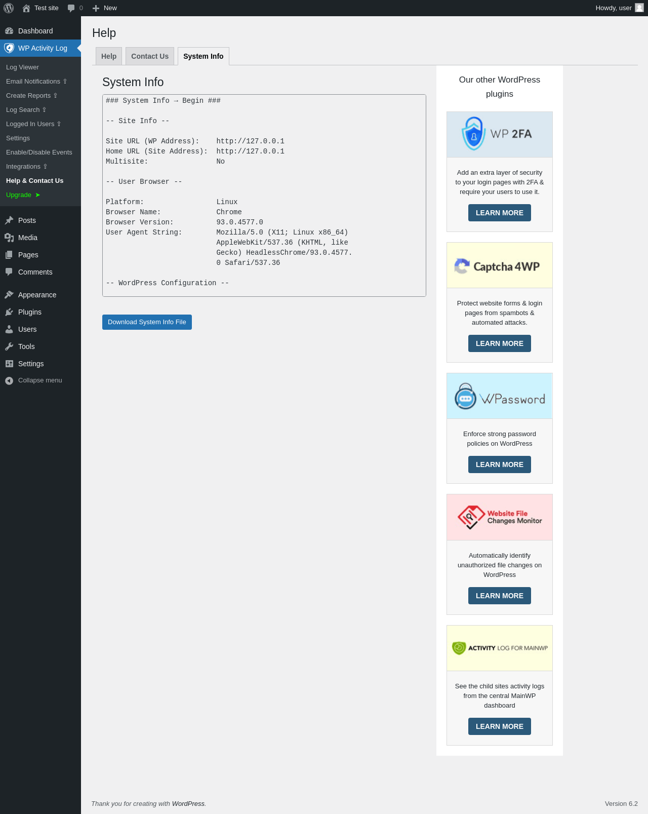 | URL | /wp-admin/admin.php?page=wsal-help&tab=system-info |
