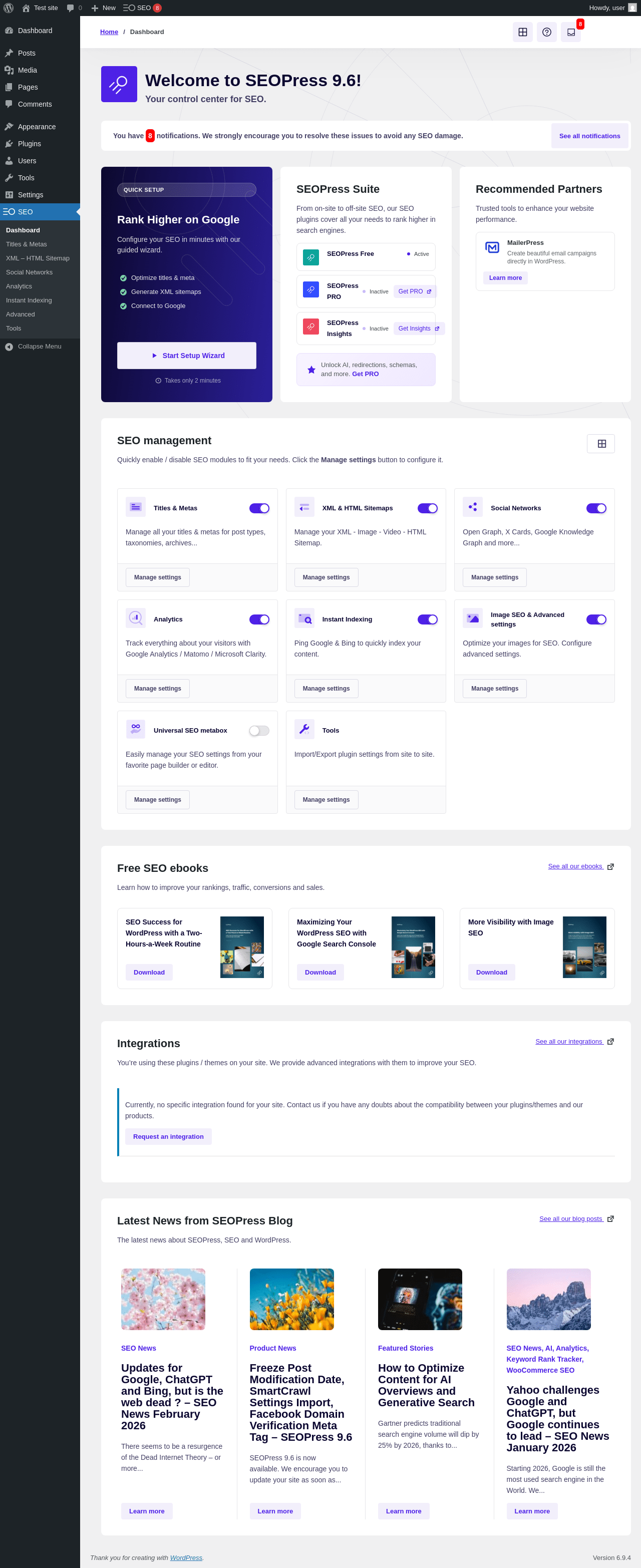 Does SEOPress work with WordPress 6.9.4 and PHP 8.1.12? A smoke test was performed on .