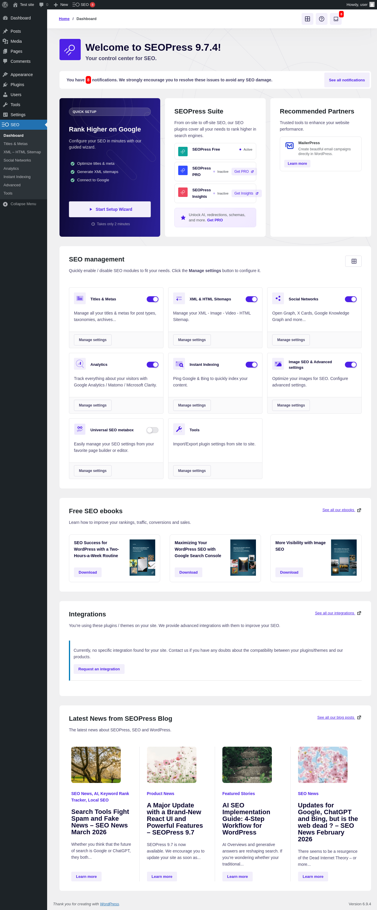 Does SEOPress work with WordPress 6.9.4 and PHP 8.1.12? A smoke test was performed on .