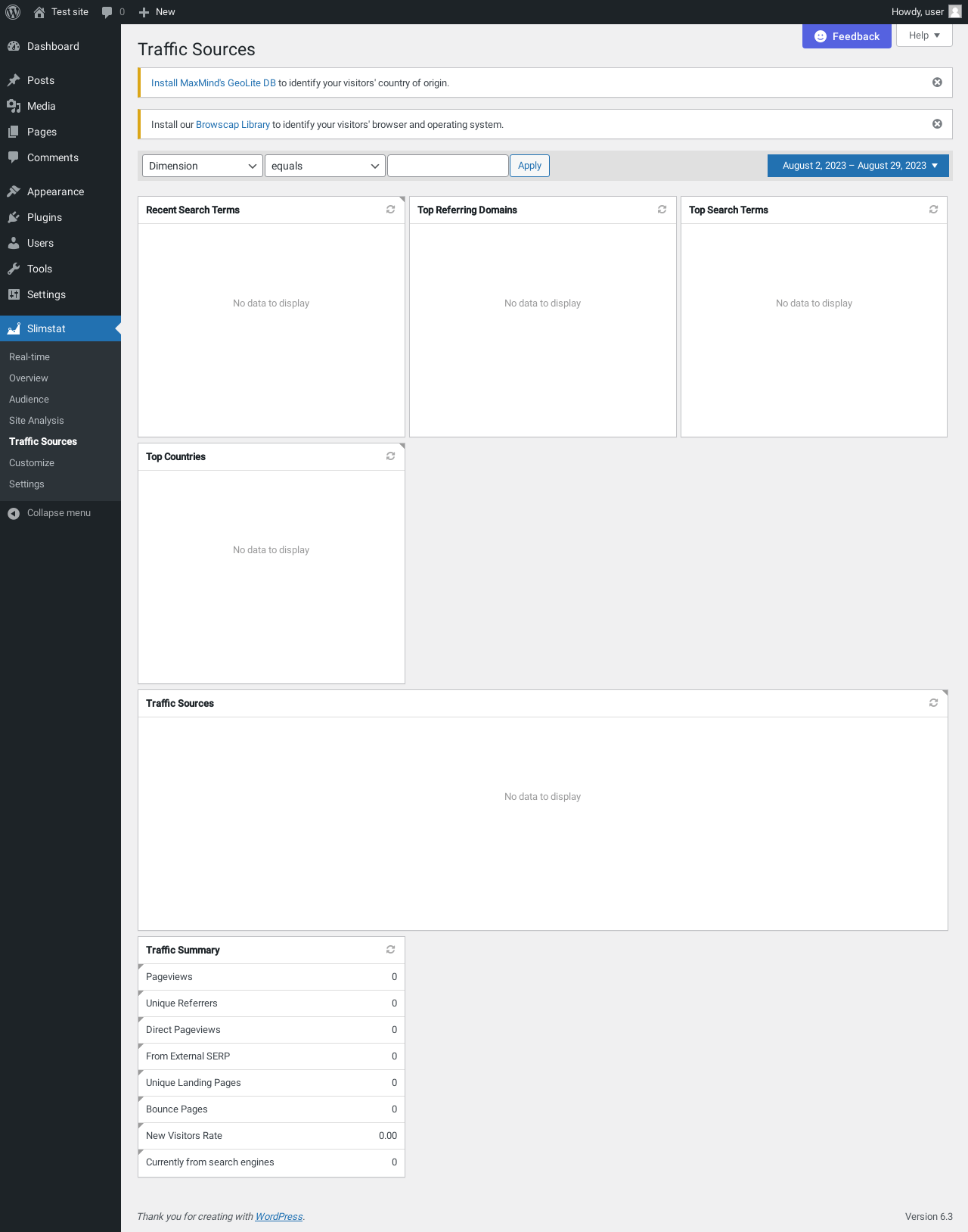 Does Slimstat Analytics work with WordPress 6.3 and PHP 8.1.12? A smoke test was performed on 2023-08-29 08:13:05 UTC .