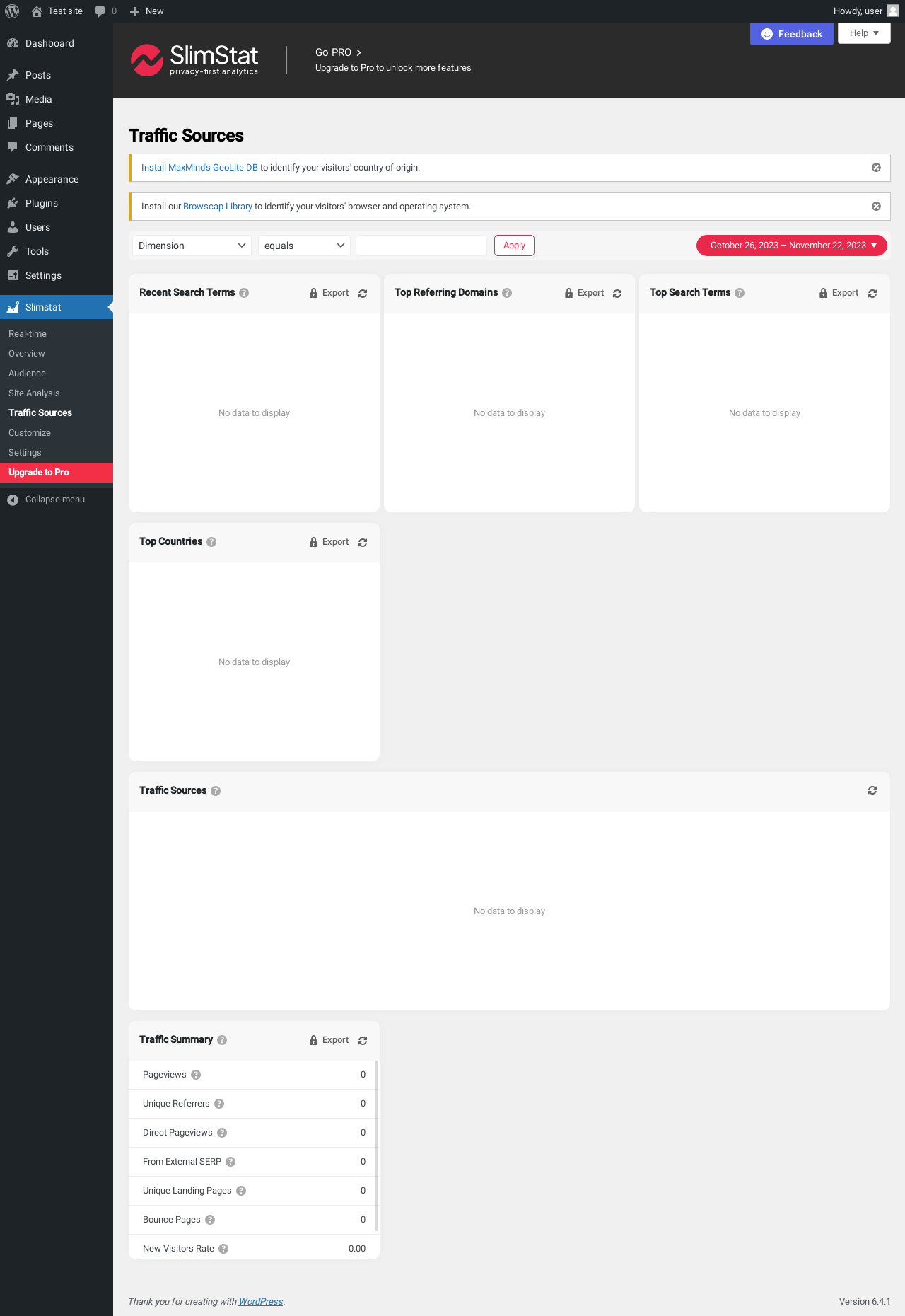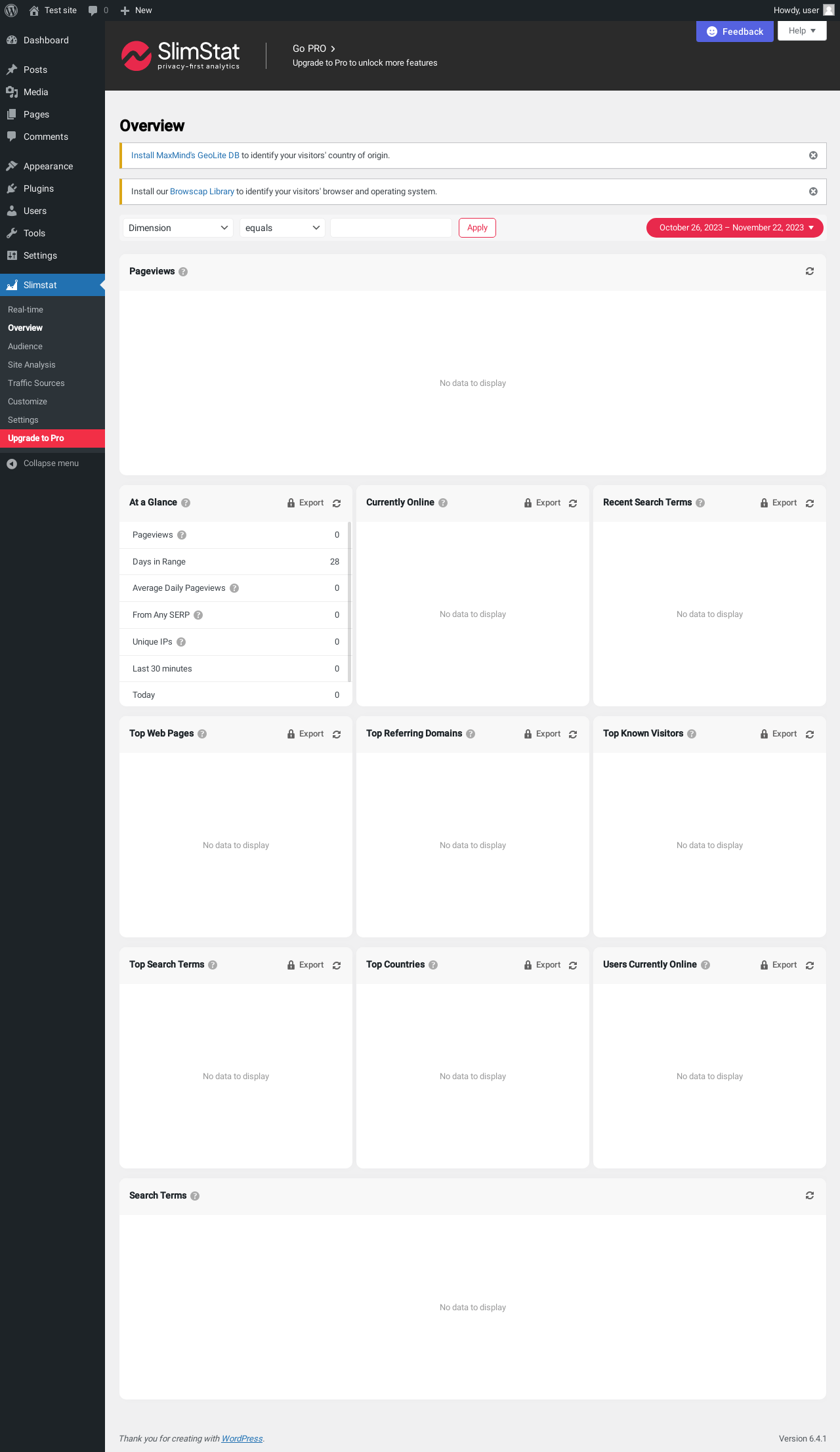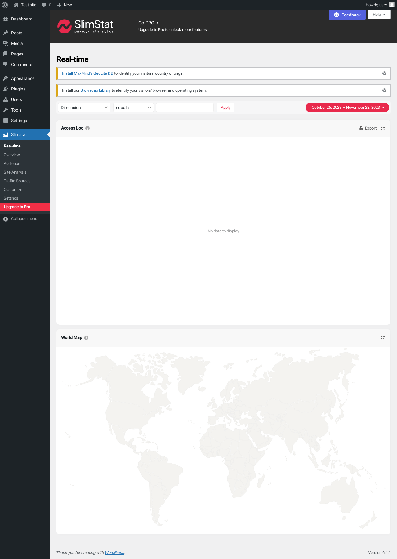 Does Slimstat Analytics work with WordPress 6.4.1 and PHP 8.1.12? A smoke test was performed on 2023-11-22 16:37:29 UTC .