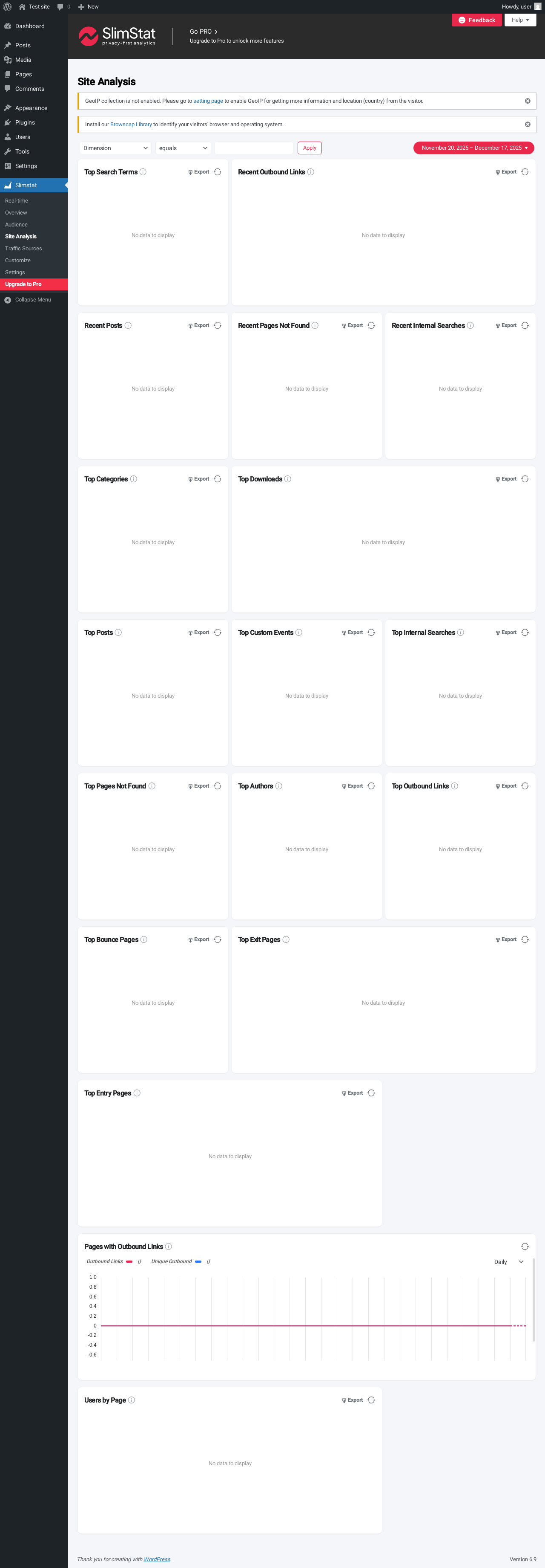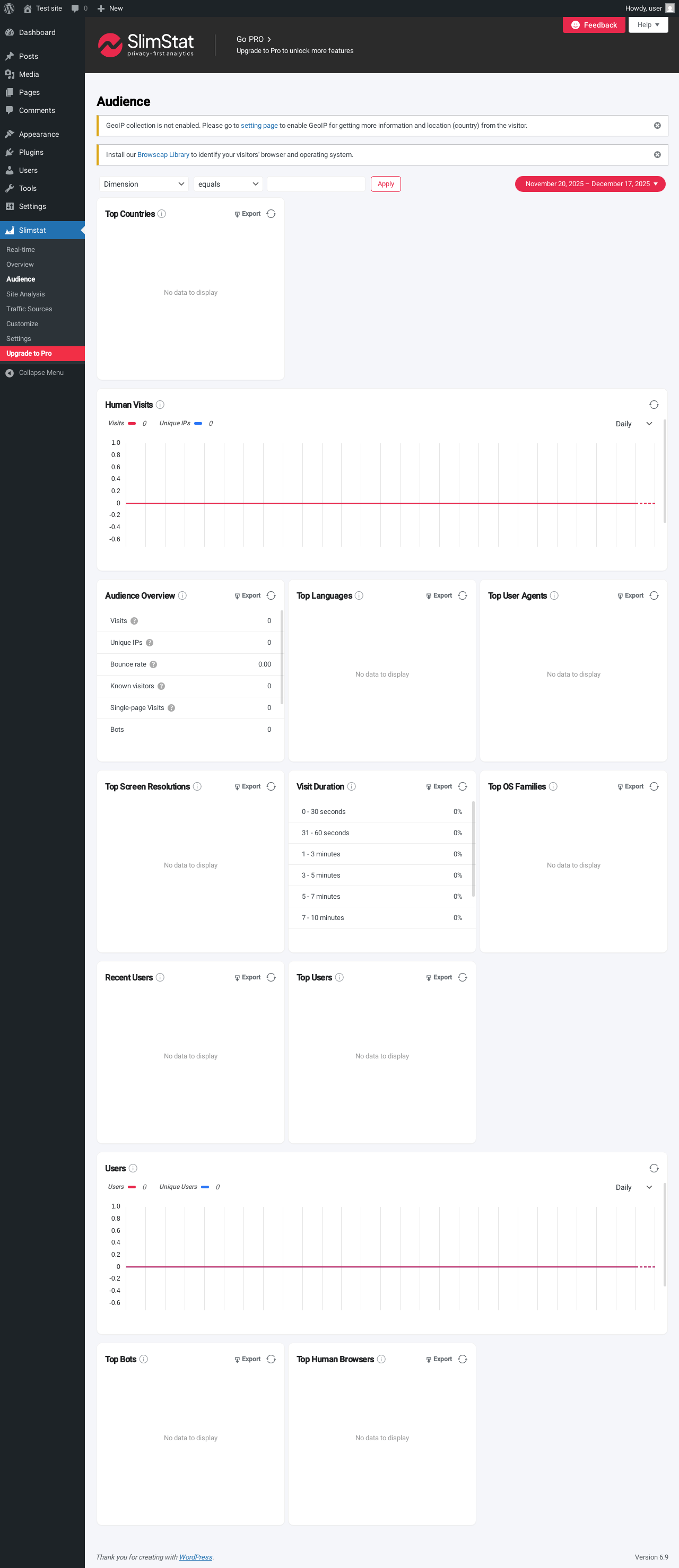 Slimstat → Upgrade to Pro