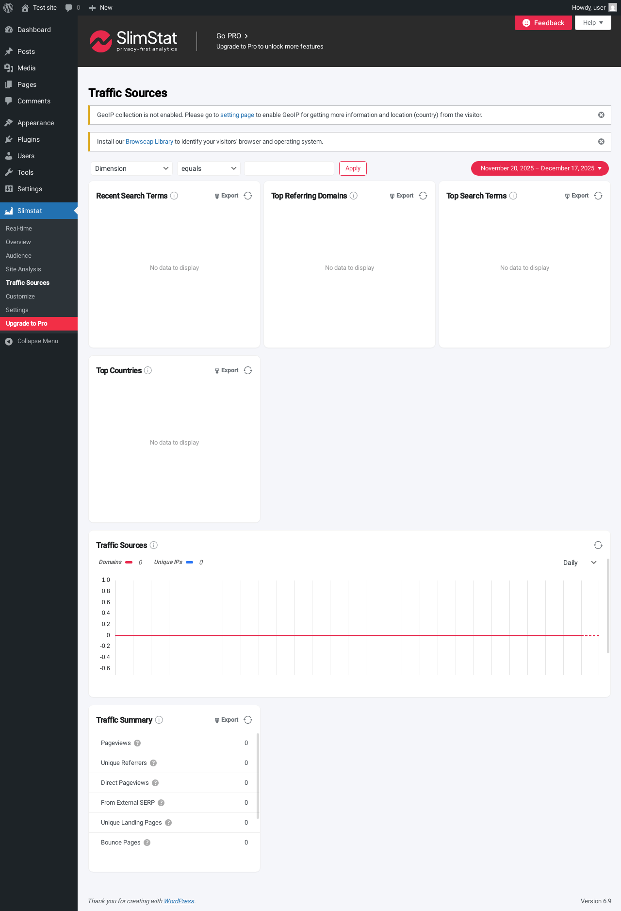 Does SlimStat Analytics work with WordPress 6.9 and PHP 8.1.12? A smoke test was performed on 2025-12-17 11:37:16 UTC .