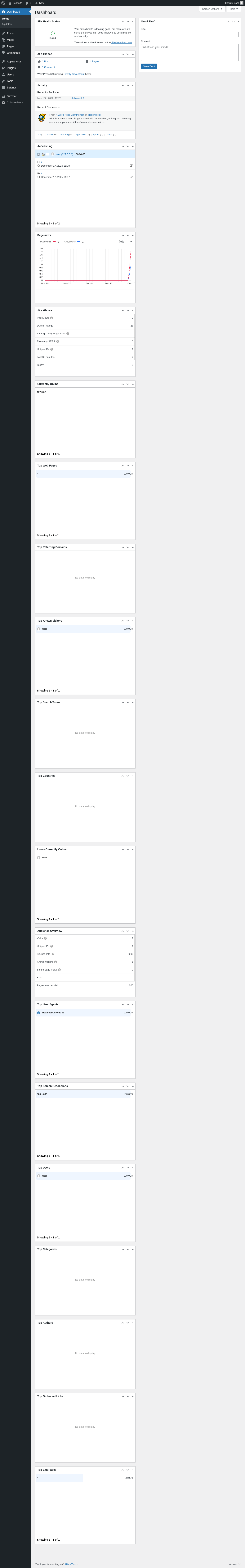 Dashboard ‹ Test site — WordPress
