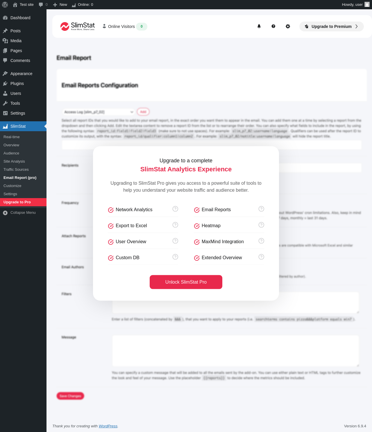 SlimStat → Upgrade to Pro