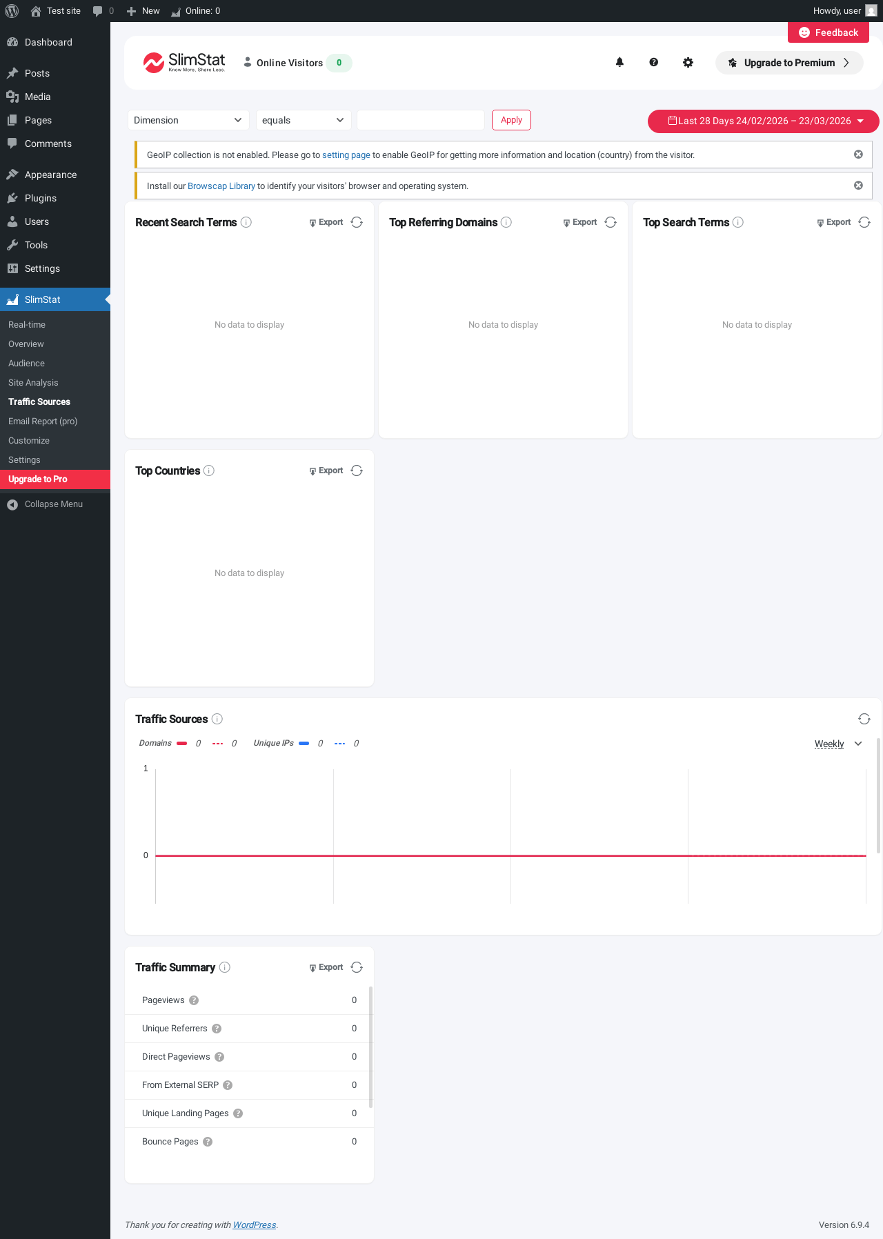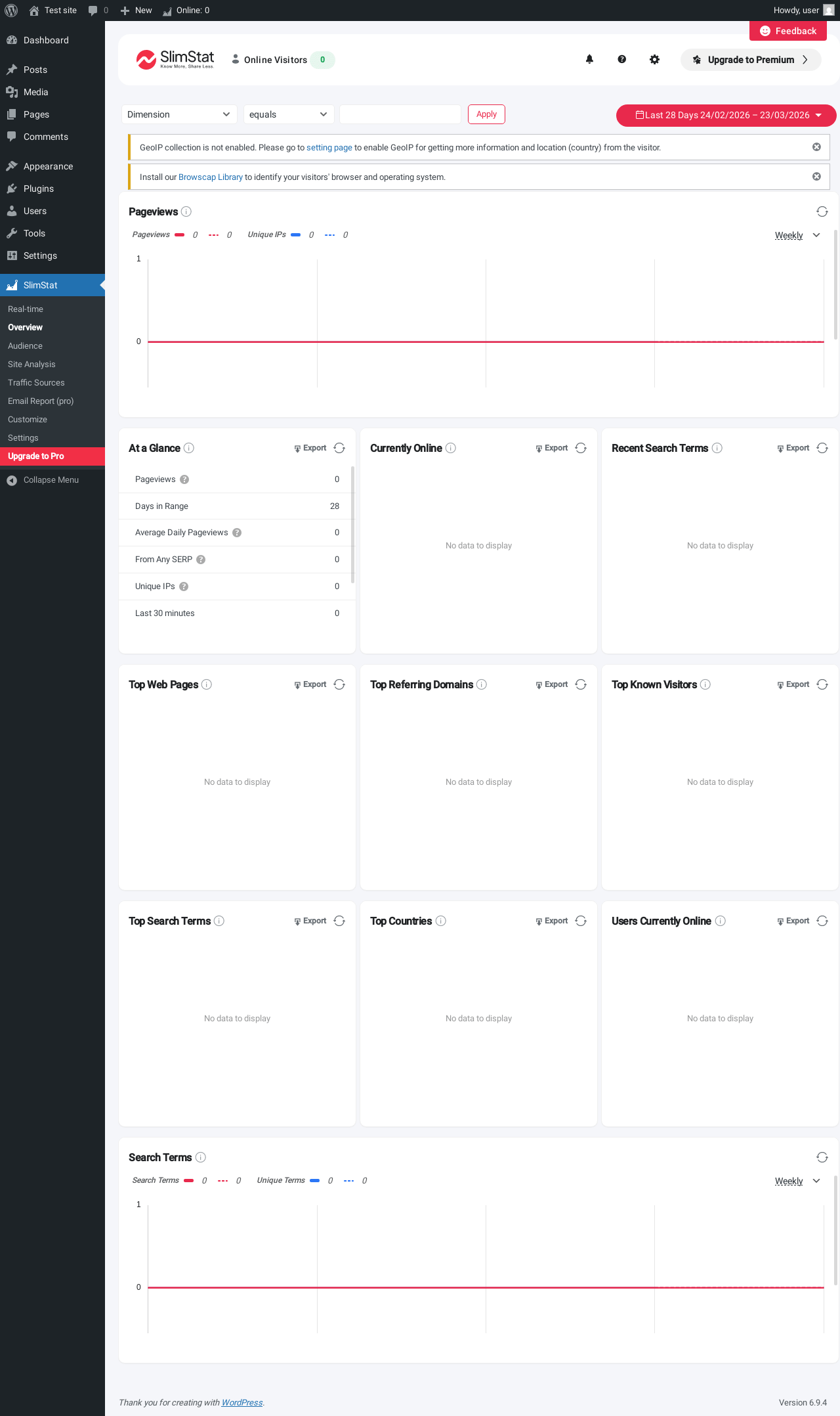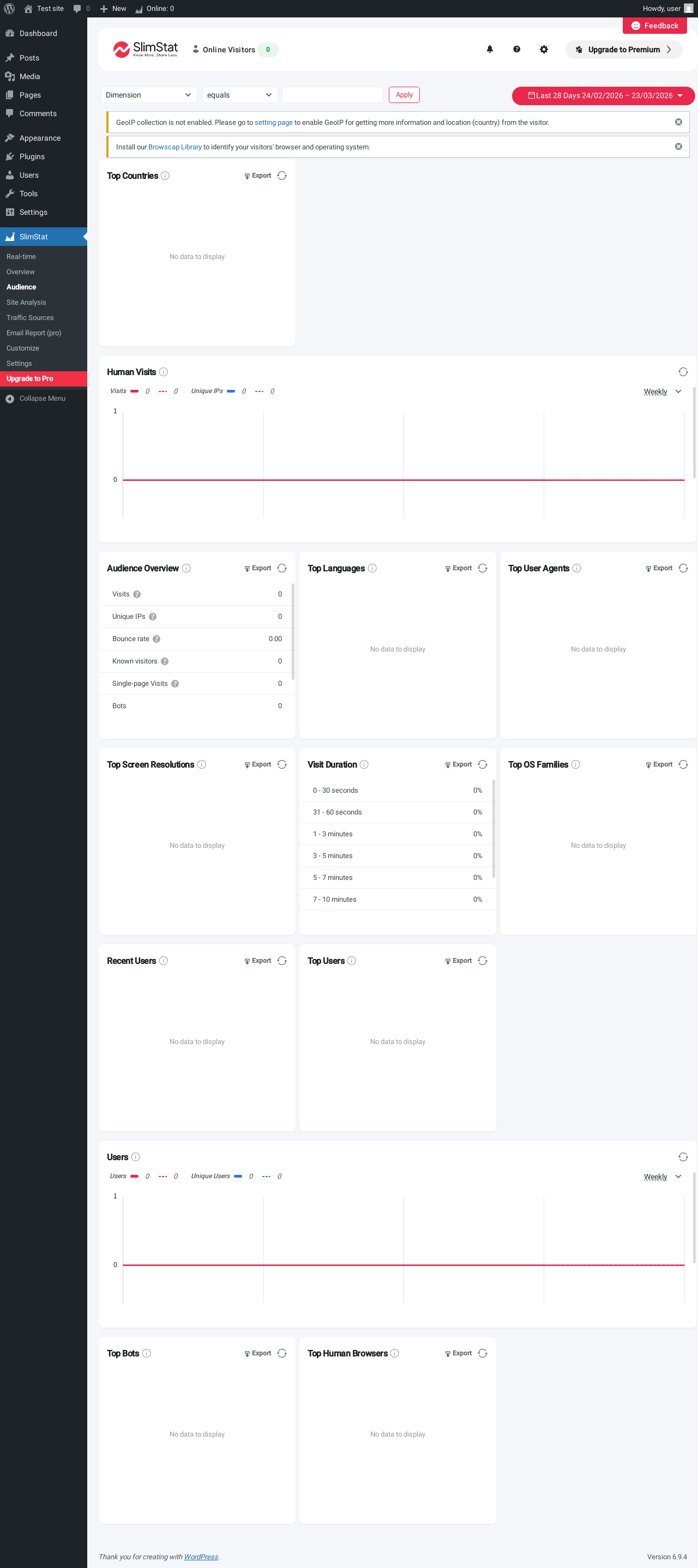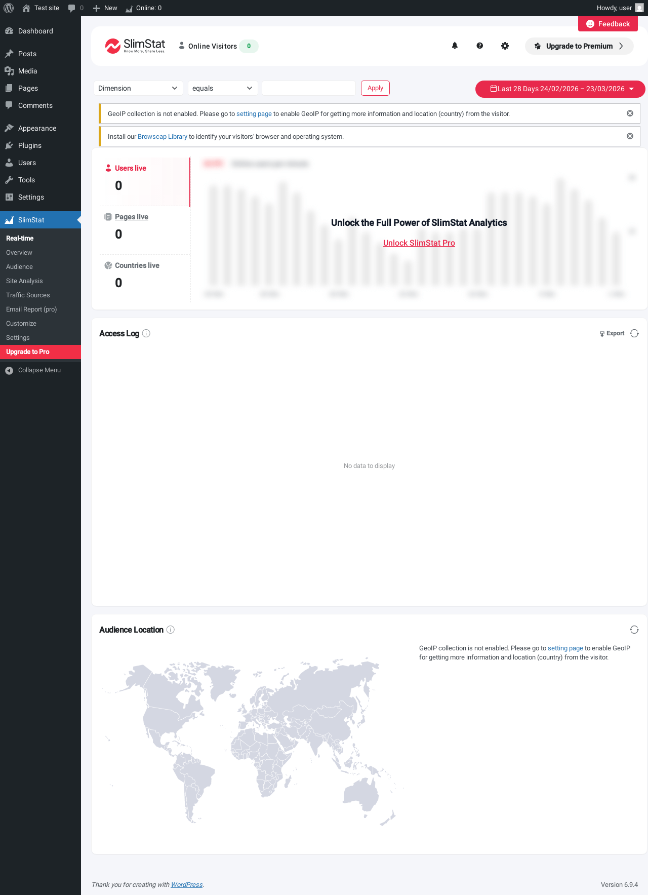 Does SlimStat Analytics work with WordPress 6.9.4 and PHP 8.1.12? A smoke test was performed on 2026-03-23 20:26:20 UTC .