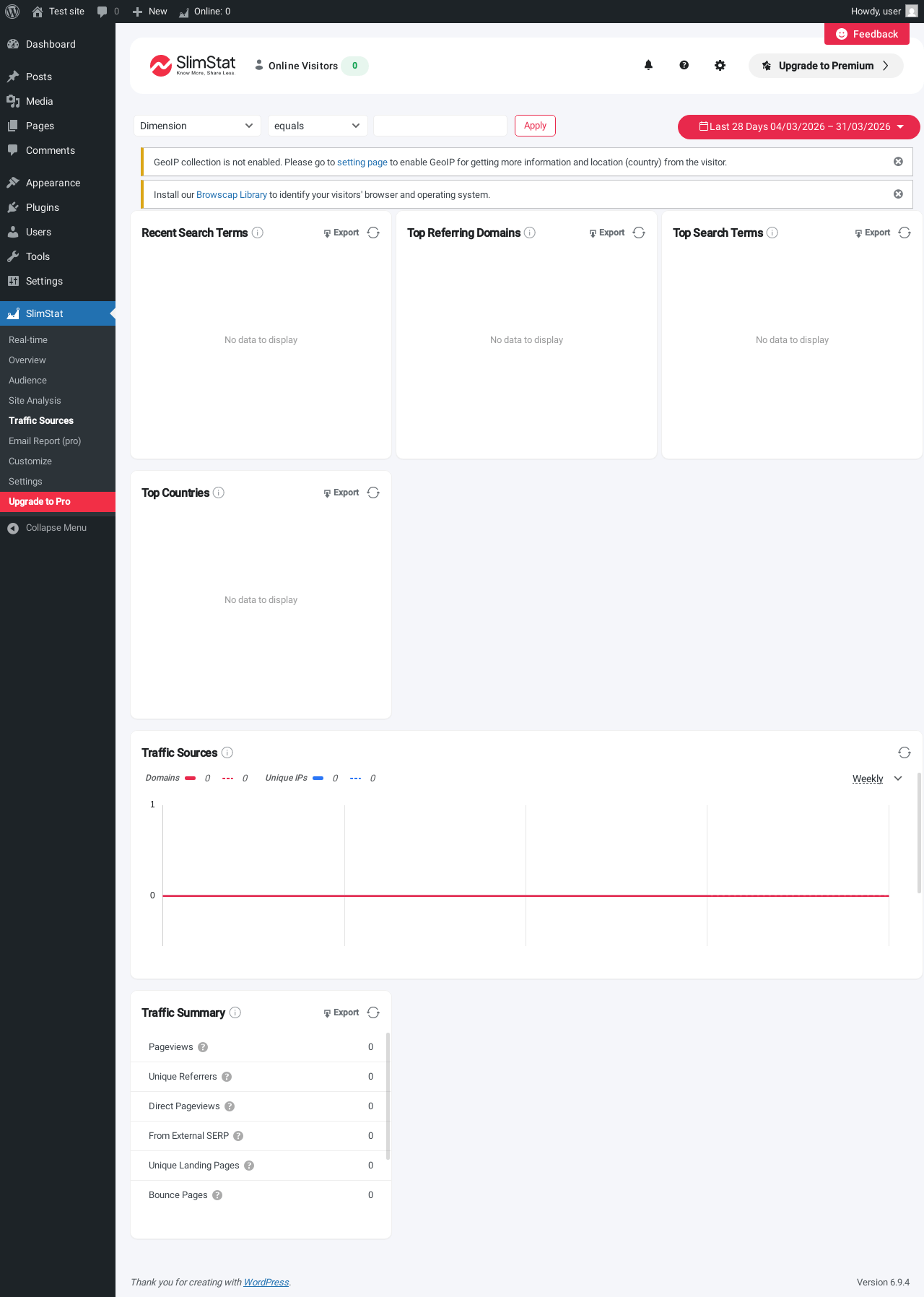 Does SlimStat Analytics work with WordPress 6.9.4 and PHP 8.1.12? A smoke test was performed on 2026-03-31 21:52:45 UTC .