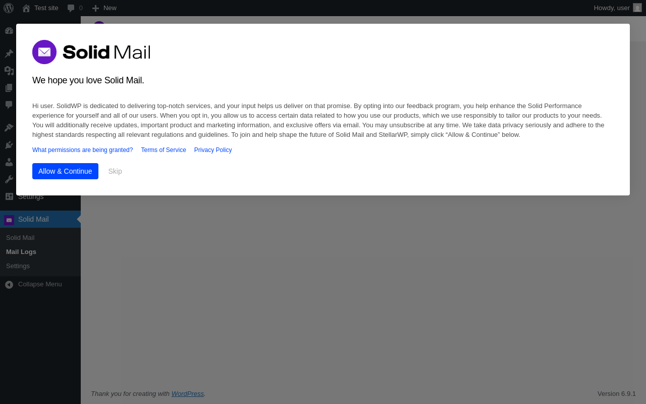 Does Solid Mail work with WordPress 6.9.1 and PHP 8.1.12? A smoke test was performed on .