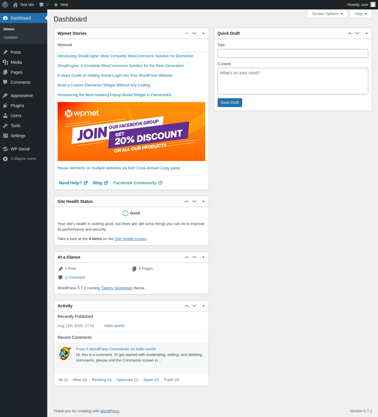 Does Wp Social work with WordPress 5.7.2 and PHP 7.4.8? A smoke test was performed on .