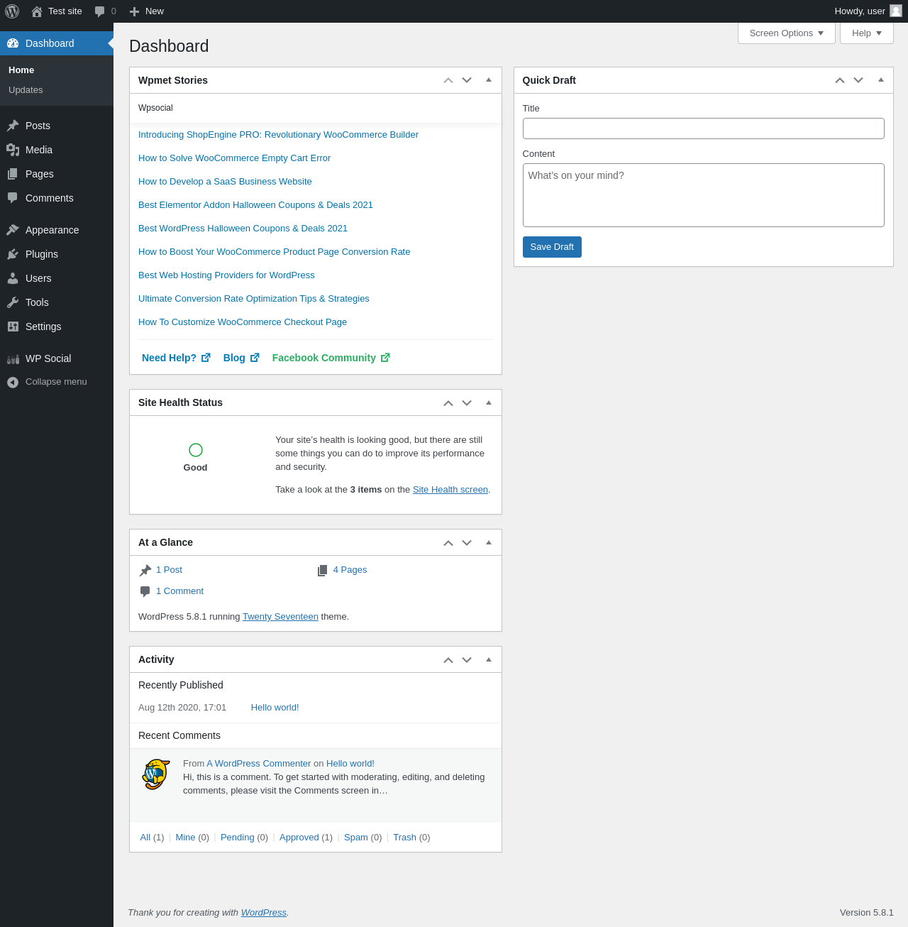 Does Wp Social work with WordPress 5.8.1 and PHP 7.4.8? A smoke test was performed on .