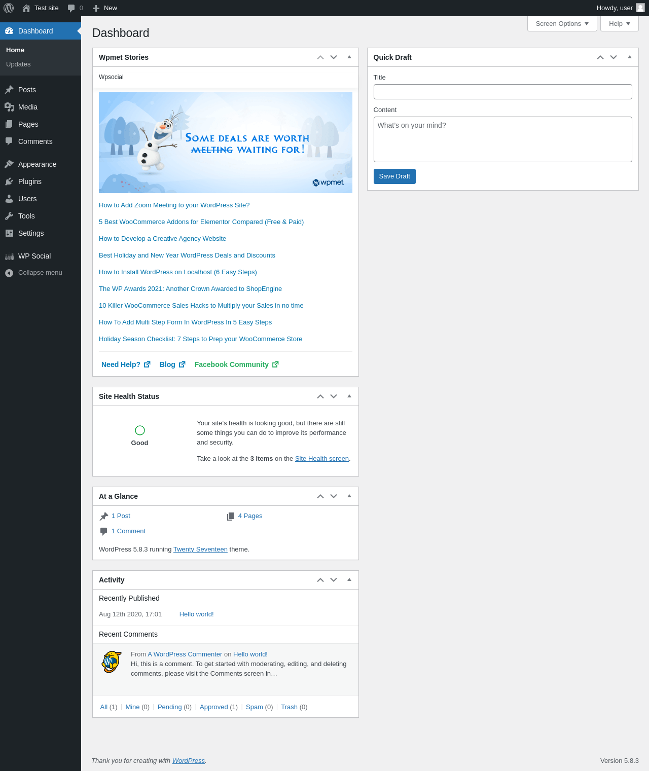 Does Wp Social work with WordPress 5.8.3 and PHP 7.4.8? A smoke test was performed on .