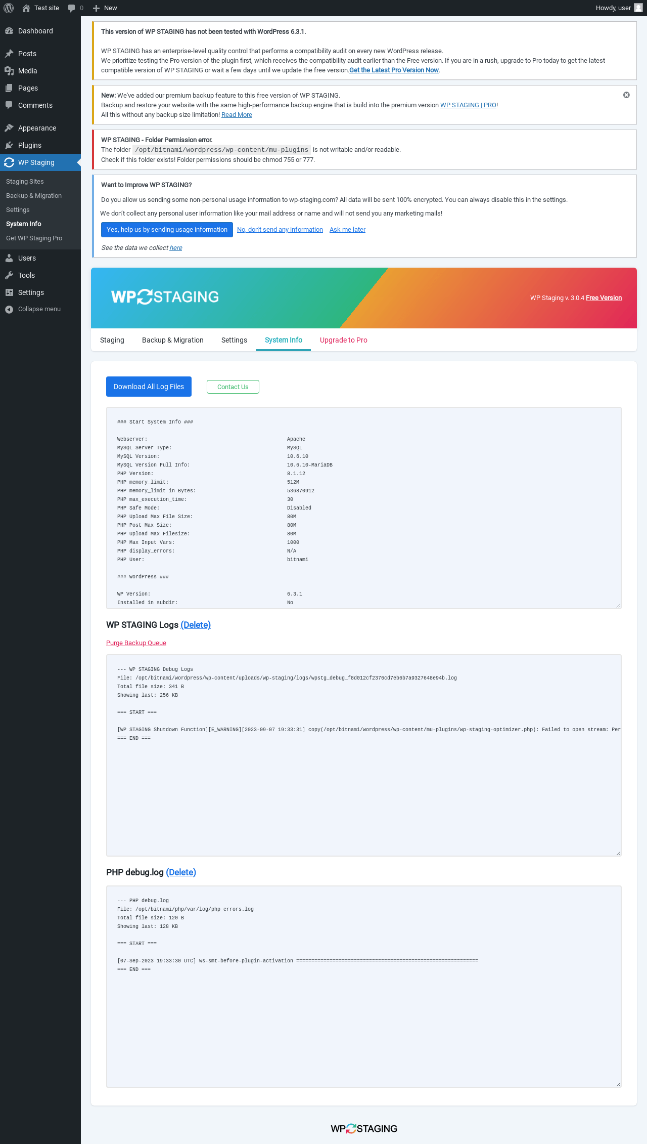 Does "Backup Duplicator & Migration - WP STAGING" work with WordPress 6.3.1 and PHP 8.1.12? A smoke test was performed on .
