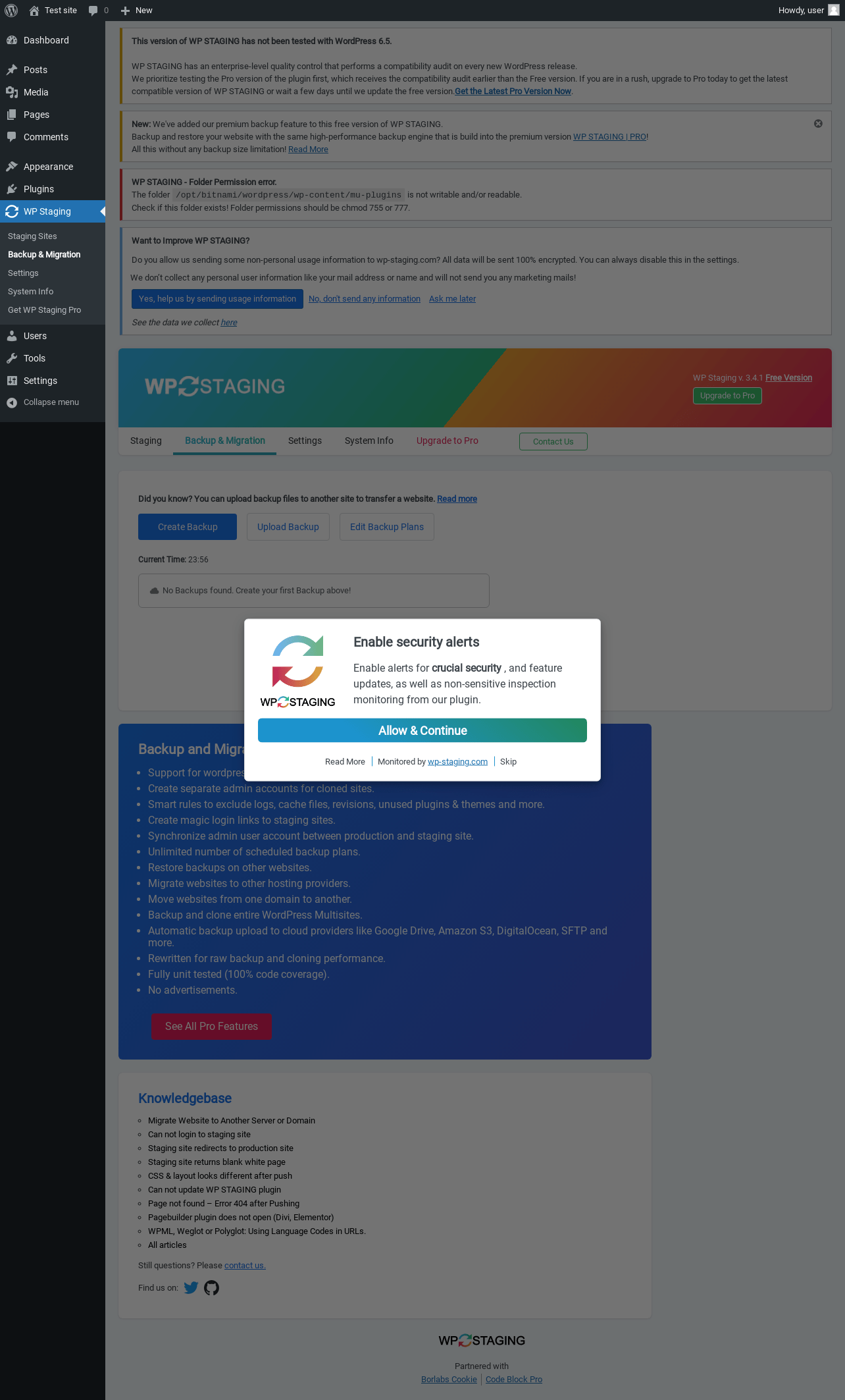 Does "WP STAGING WordPress Backup Plugin - Backup Duplicator & Migration" work with WordPress 6.5 and PHP 8.1.12? A smoke test was performed on .