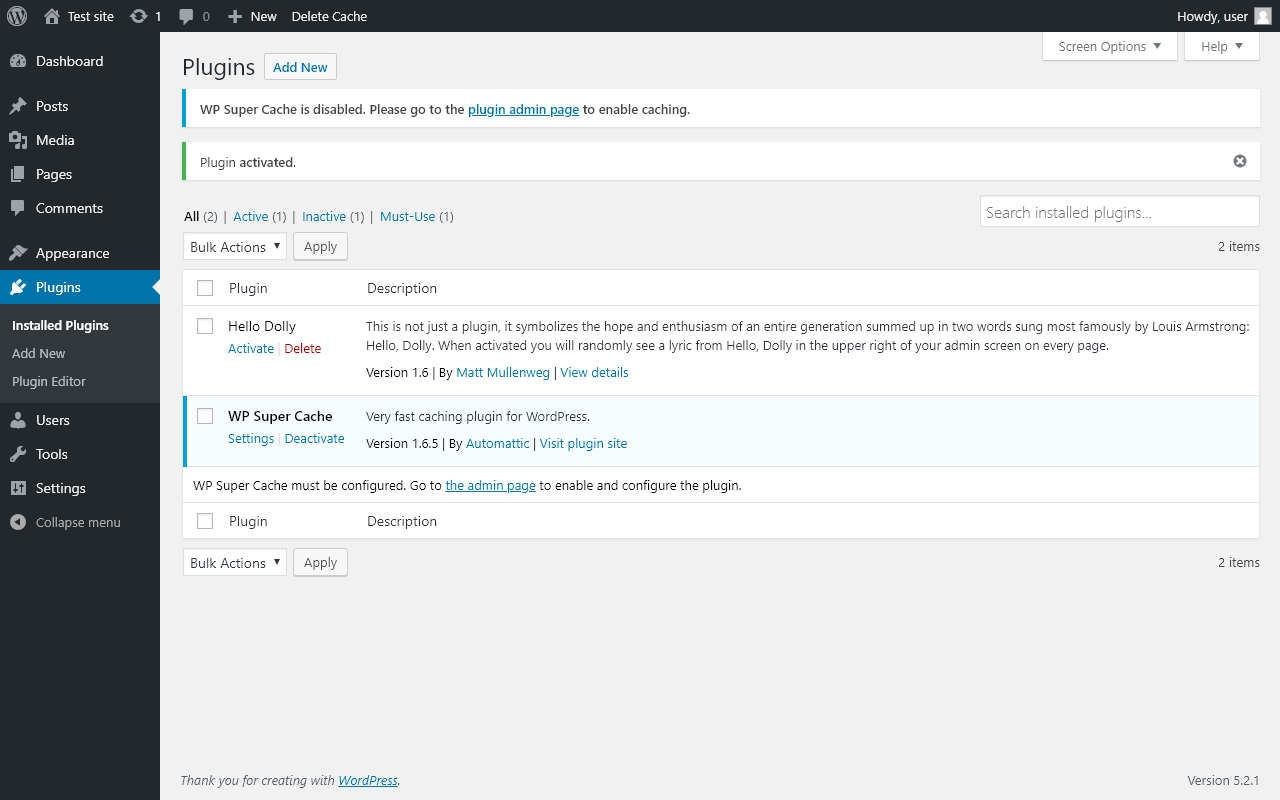 Does WP Super Cache work with WordPress 5.2.1 and PHP 7.0.16? A smoke test was performed on .