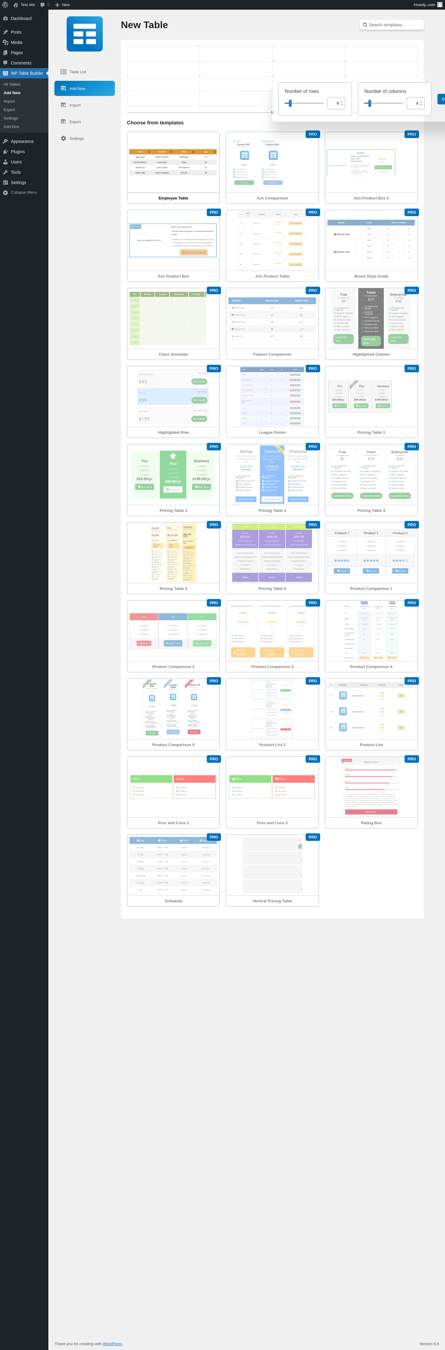 | URL | /wp-admin/admin.php?page=wptb-create |