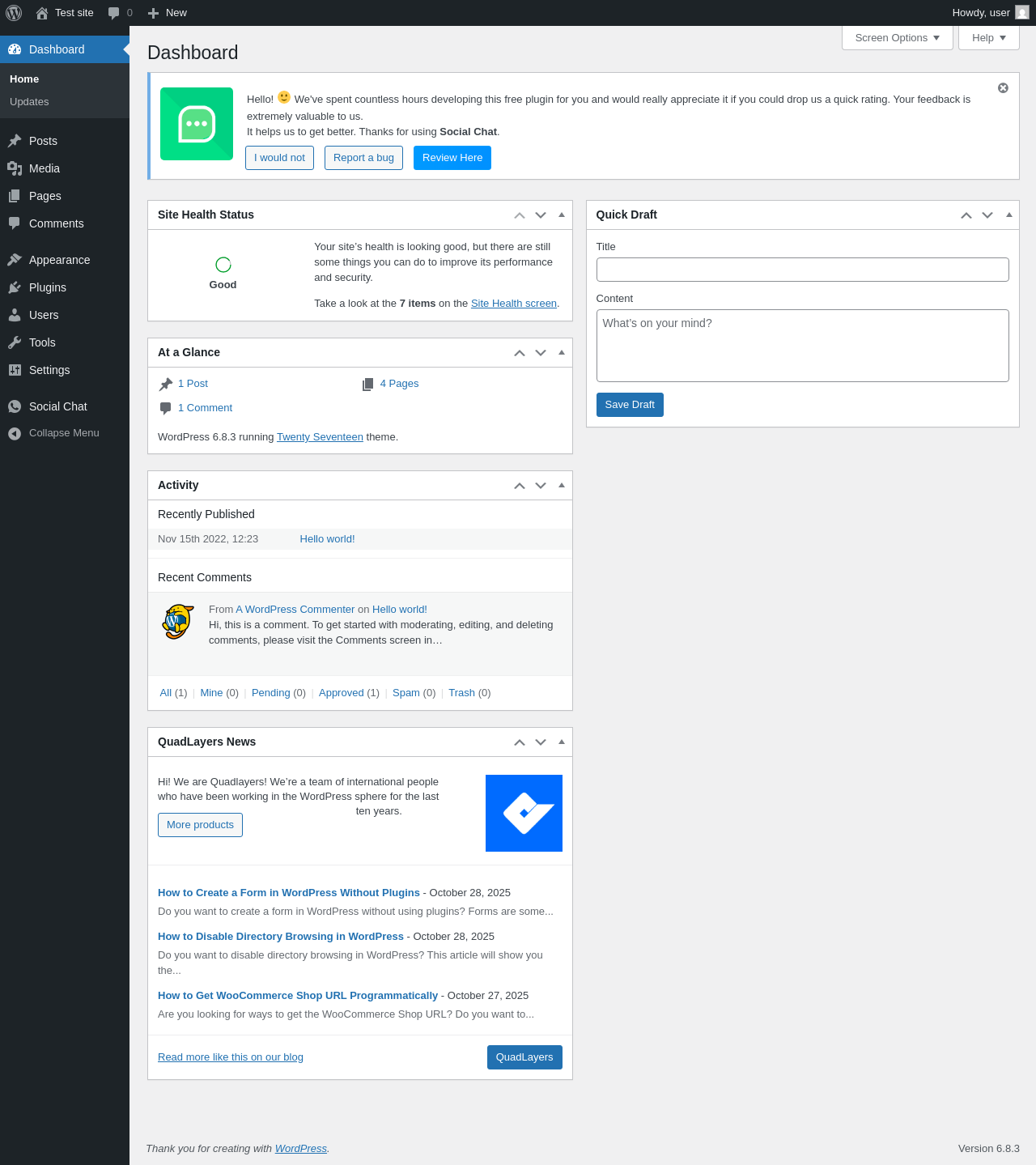 Does Social Chat work with WordPress 6.8.3 and PHP 8.1.12? A smoke test was performed on .