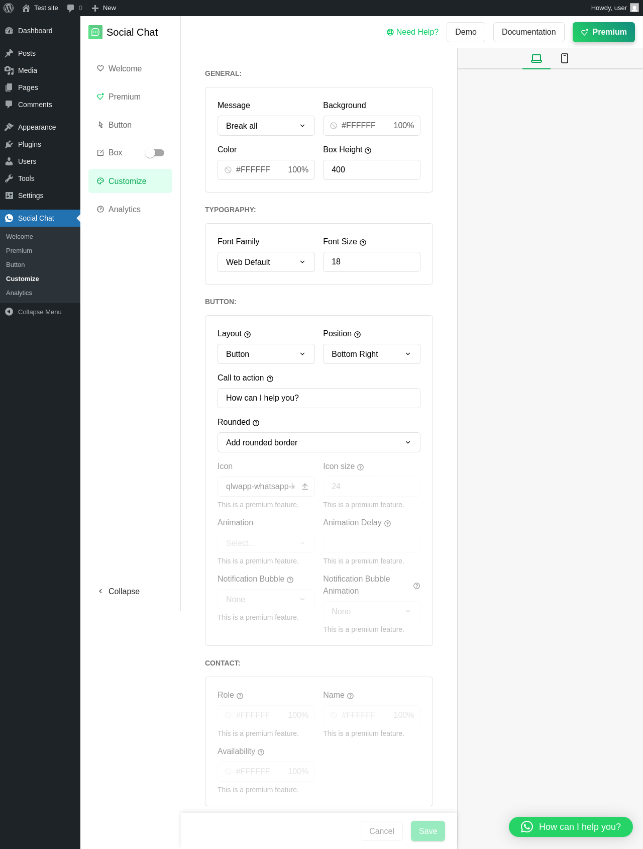 | URL | /wp-admin/admin.php?page=wp-whatsapp-chat&tab=customize |