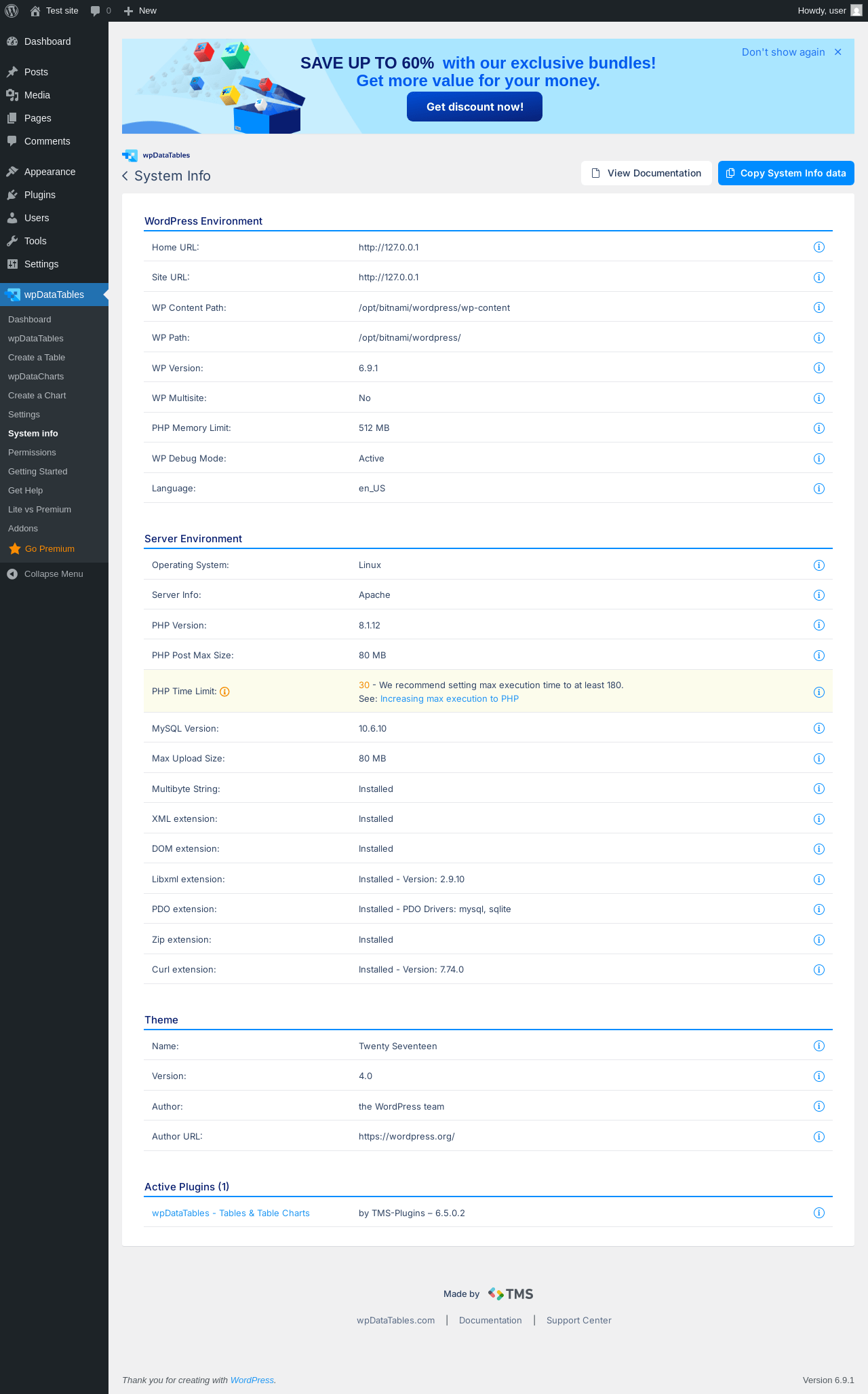 | URL | /wp-admin/admin.php?page=wpdatatables-system-info |