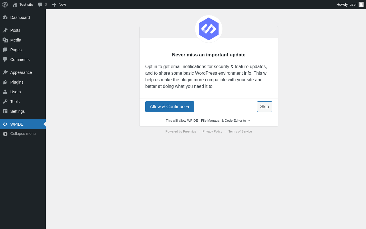 | URL | /wp-admin/admin.php?page=wpide#/ |