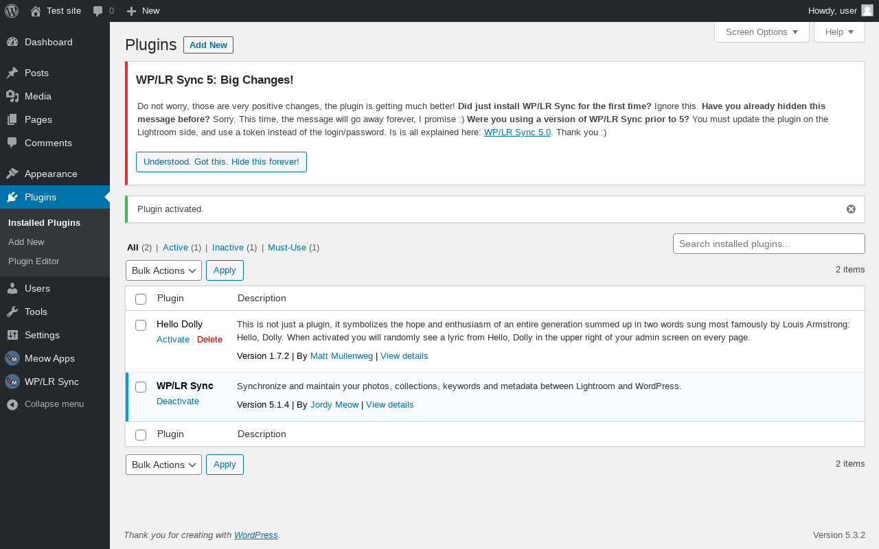 Does WP/LR Sync work with WordPress 5.3.2 and PHP 7.2.16? A smoke test was performed on .