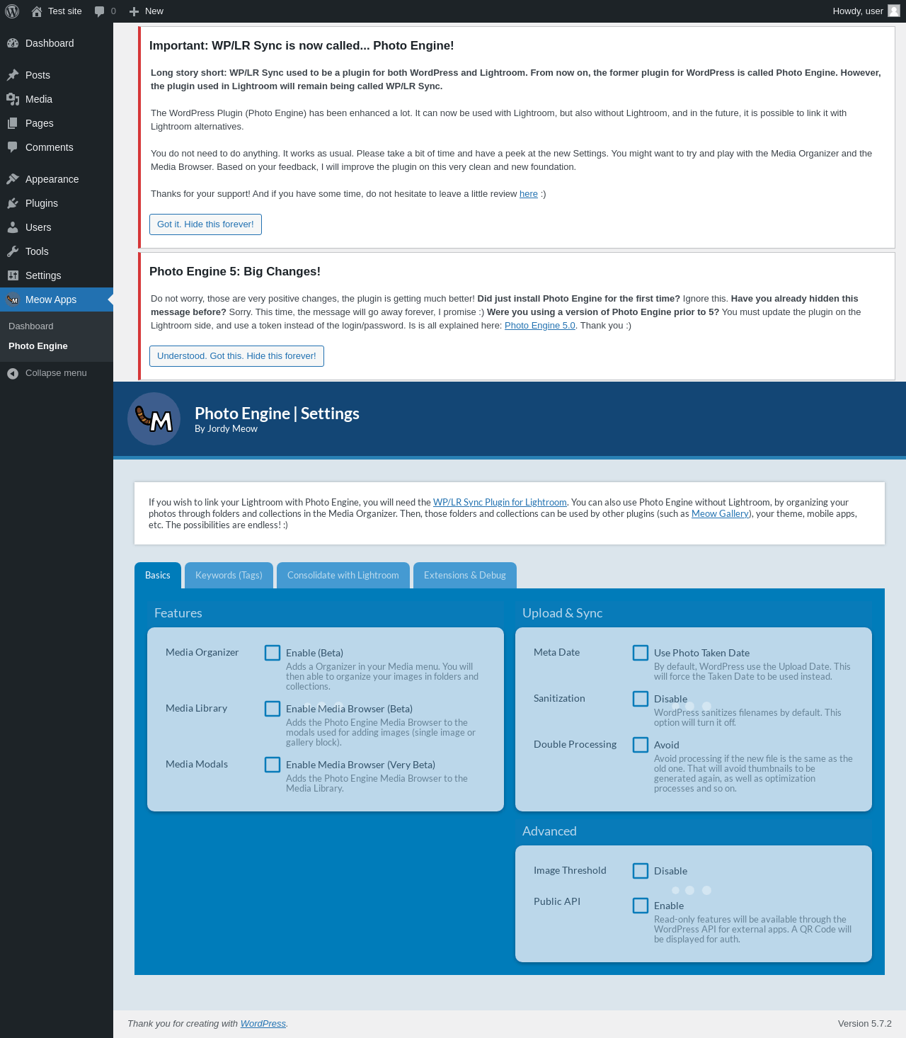 Does Photo Engine (WP/LR Sync) work with WordPress 5.7.2 and PHP 7.4.8? A smoke test was performed on .
