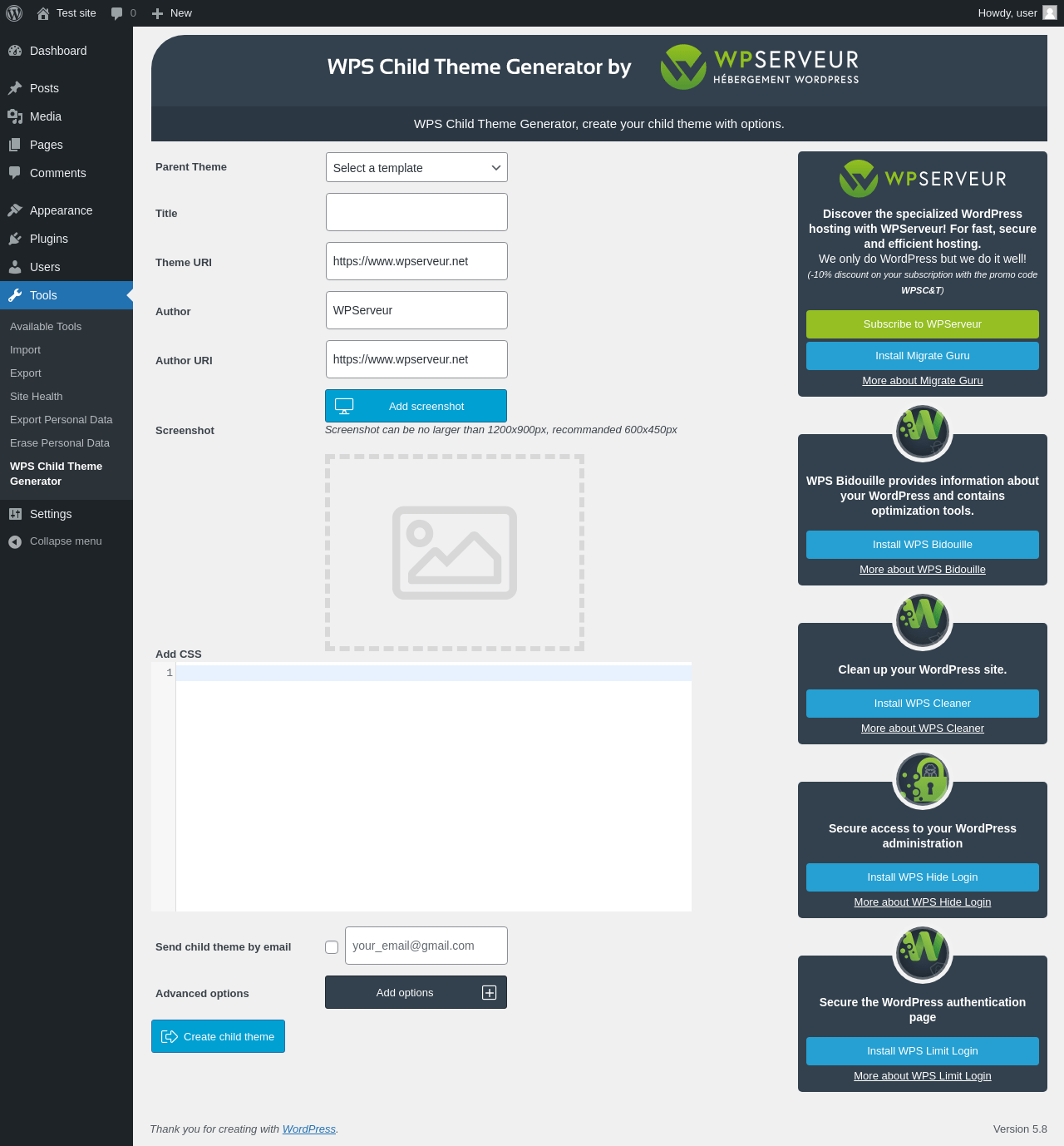 | URL | /wp-admin/tools.php?page=wps-child-theme-generator |