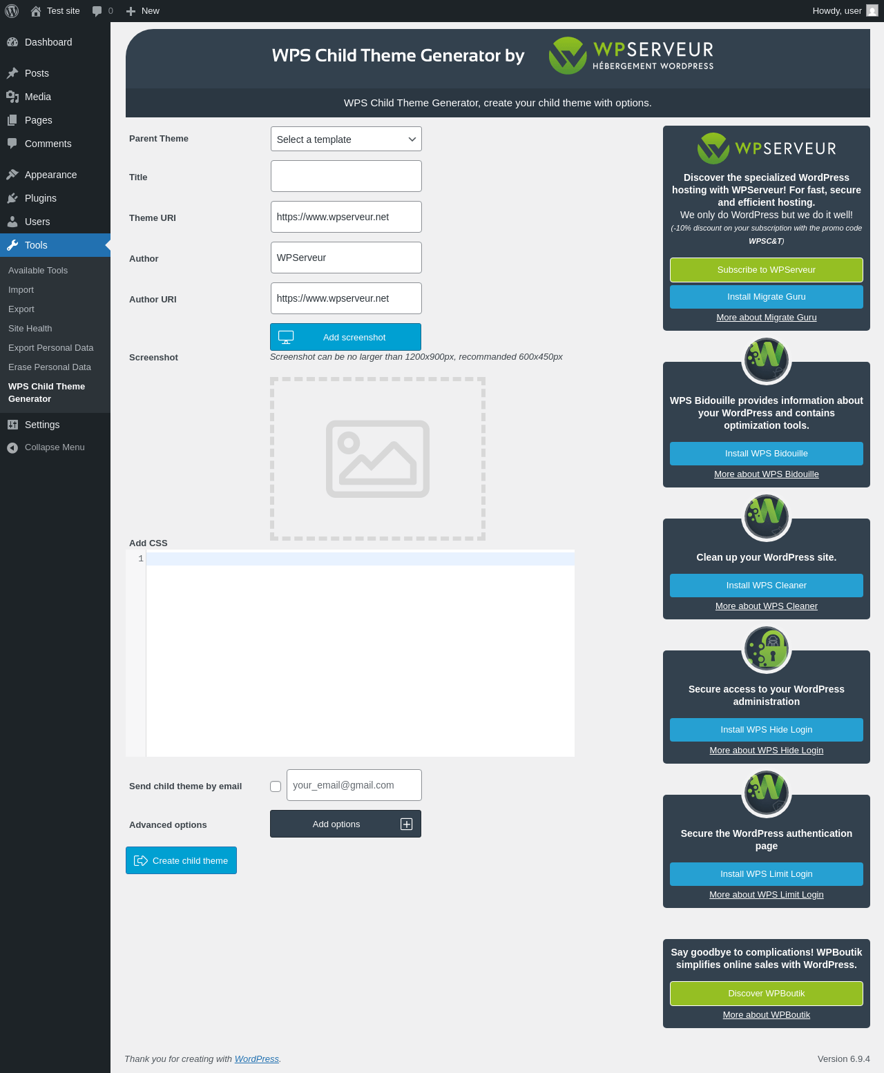 | URL | /wp-admin/tools.php?page=wps-child-theme-generator |