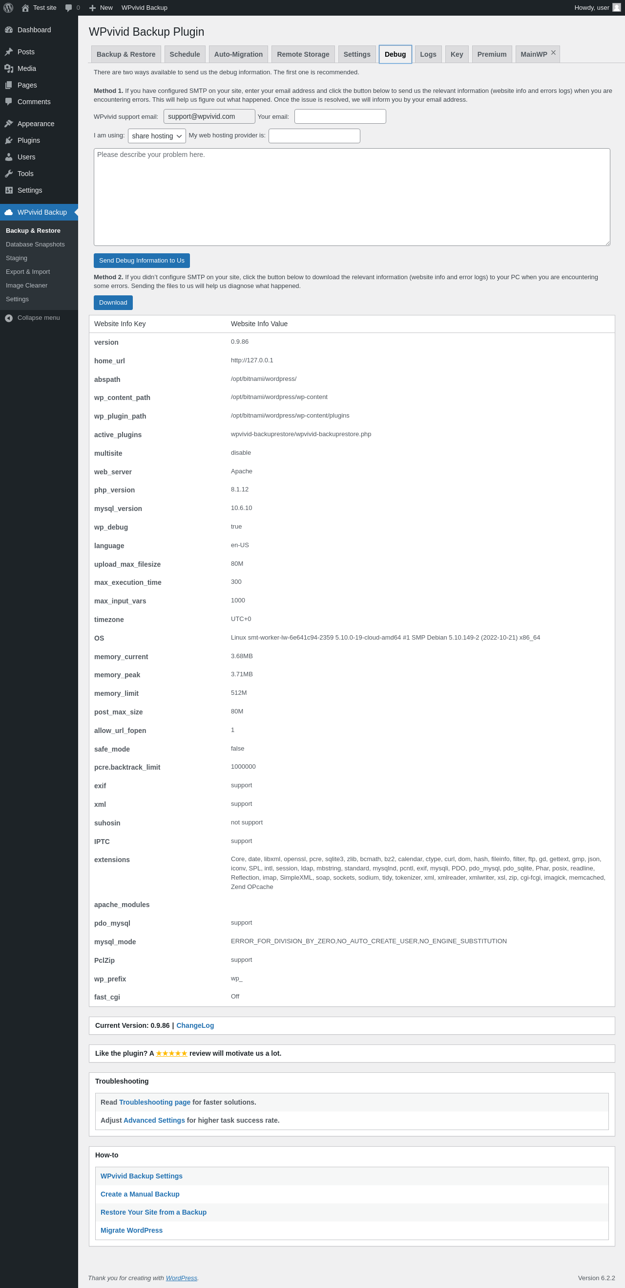 Does WPvivid Backup Plugin work with WordPress 6.2.2 and PHP 8.1.12? A smoke test was performed on .