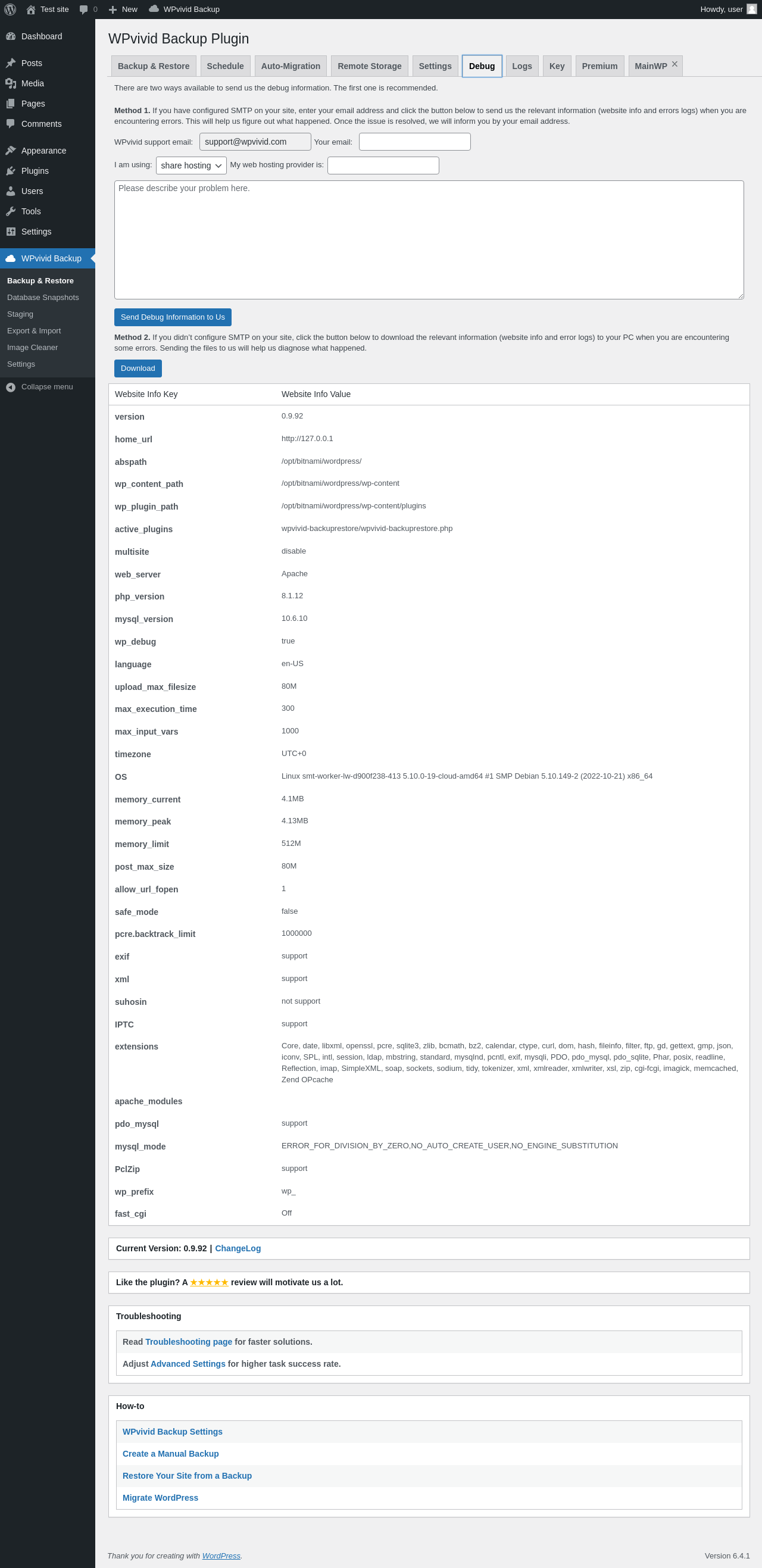 Does WPvivid Backup Plugin work with WordPress 6.4.1 and PHP 8.1.12? A smoke test was performed on .