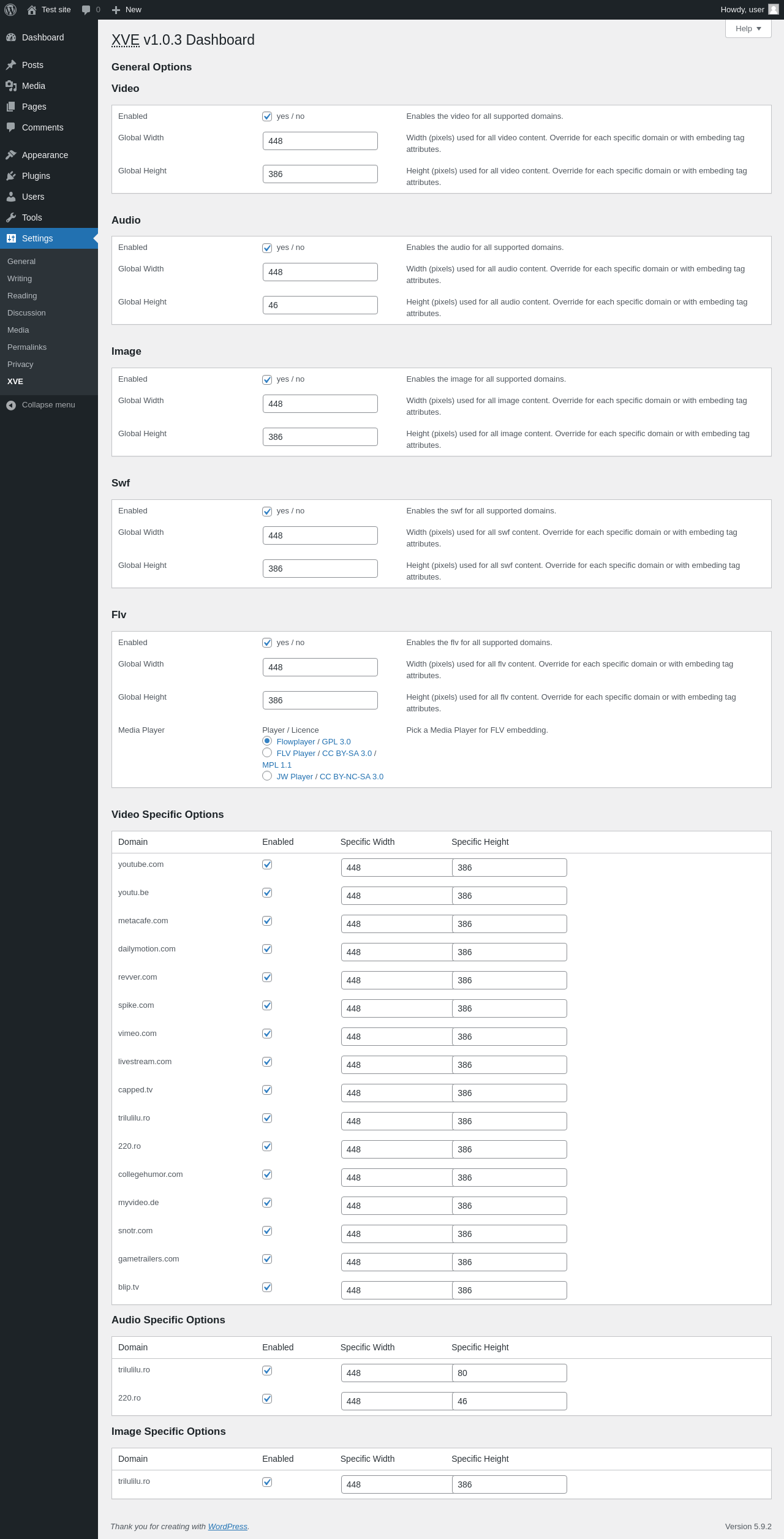 | URL | /wp-admin/options-general.php?page=xve-various-embed |