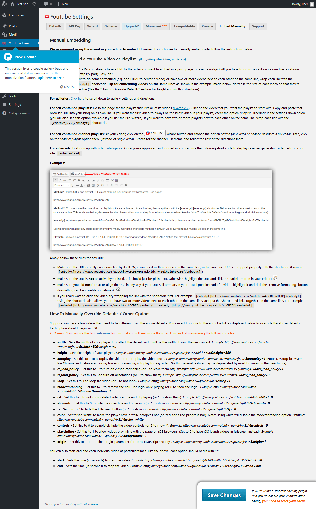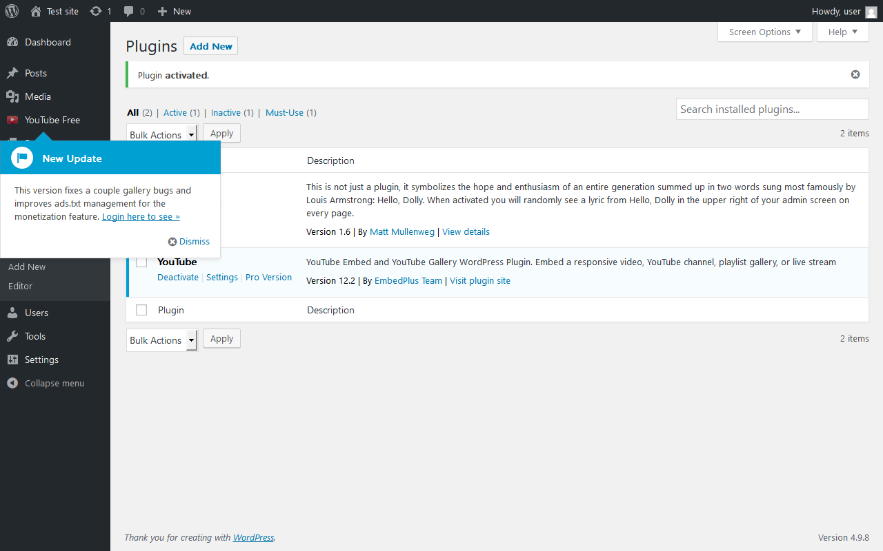 Does YouTube work with WordPress 4.9.8 and PHP 7.0.16? A smoke test was performed on .