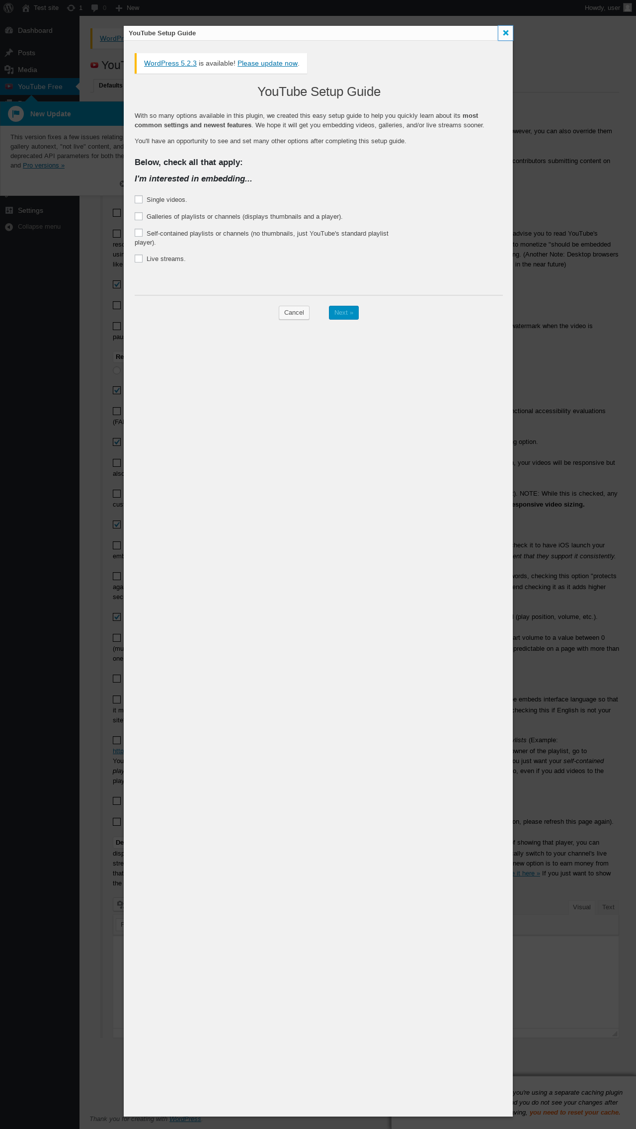 Does YouTube work with WordPress 5.2.3 and PHP 7.2.16? A smoke test was performed on .
