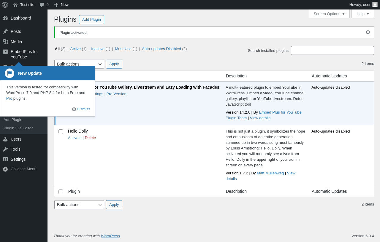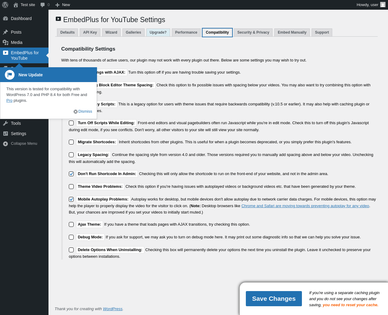 Does "Embed Plus for YouTube Gallery, Livestream and Lazy Loading with Facades" work with WordPress 6.9.4 and PHP 8.1.12? A smoke test was performed on .