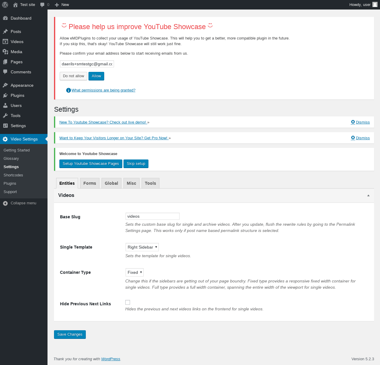 Does Youtube Showcase work with WordPress 5.2.3 and PHP 7.2.16? A smoke test was performed on .